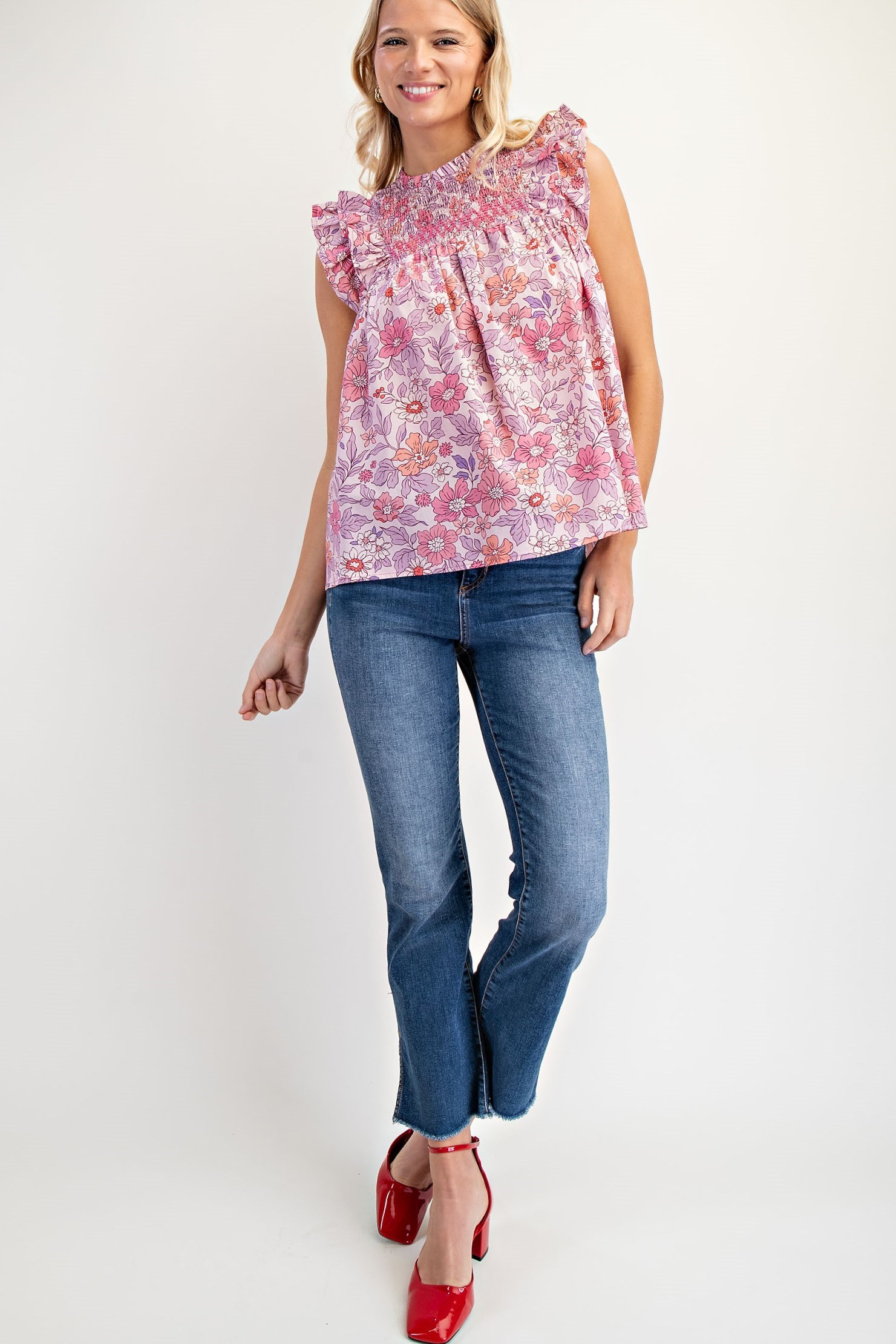 Printed Short Dolman Sleeve Top with Contrasting Binding Details