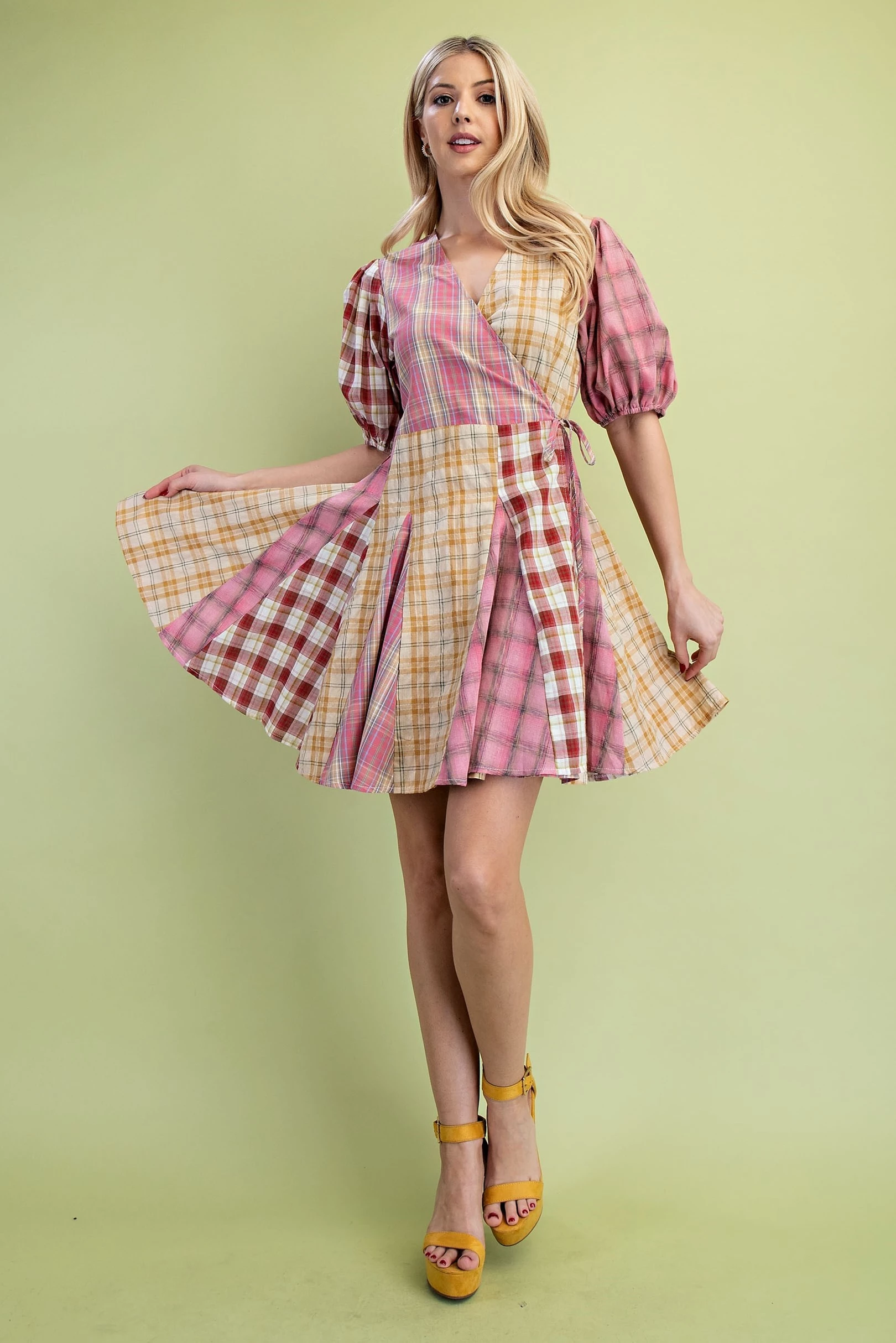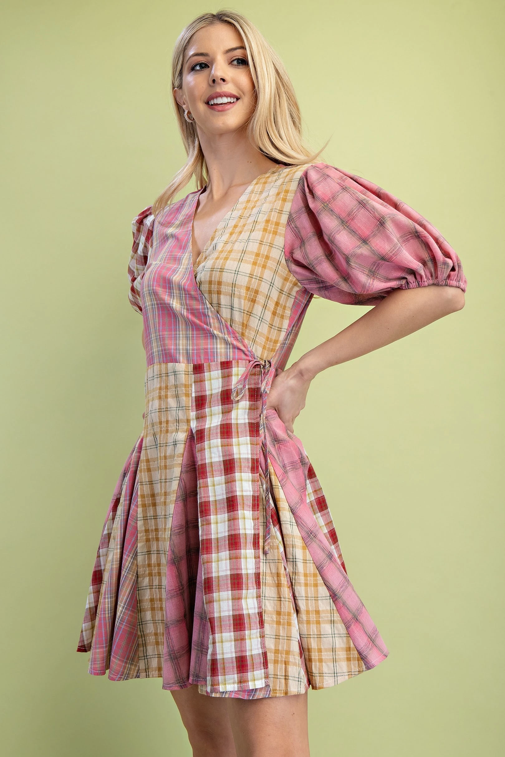 Mixed Print Balloon Sleeve Top with Binding Details