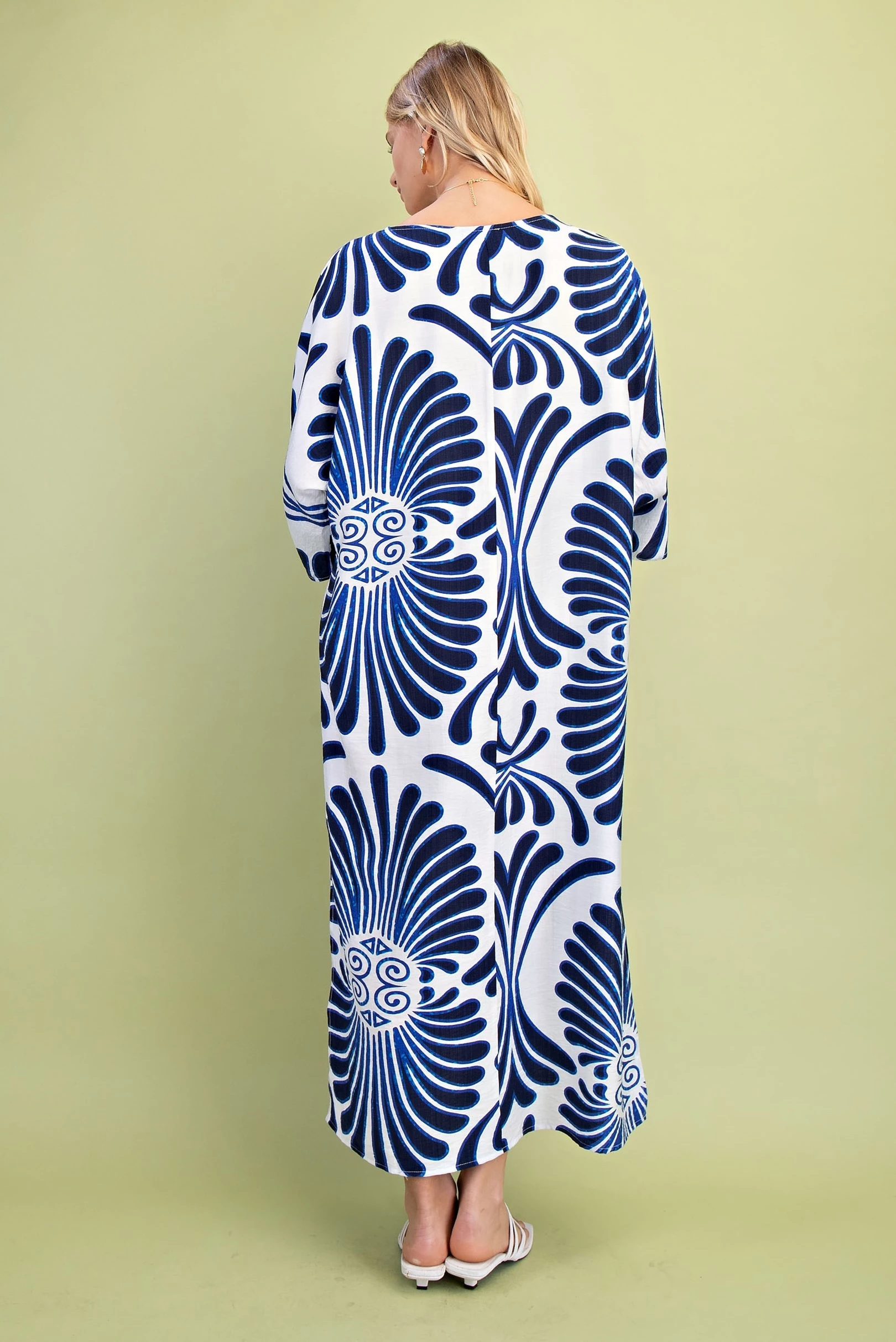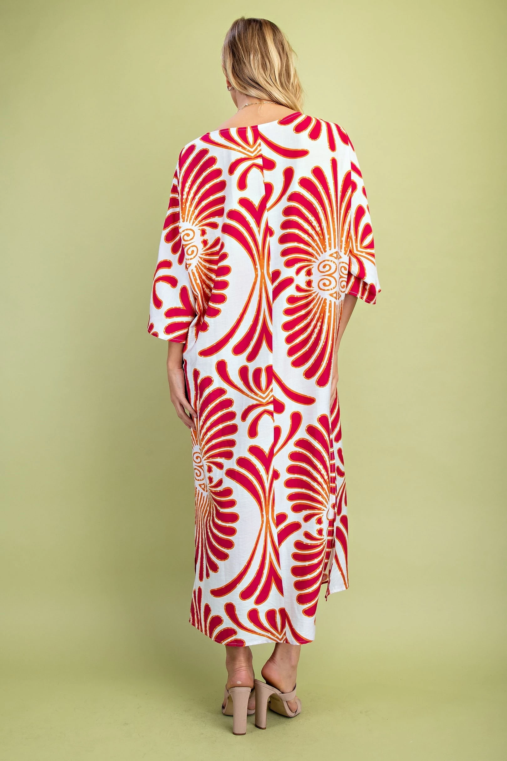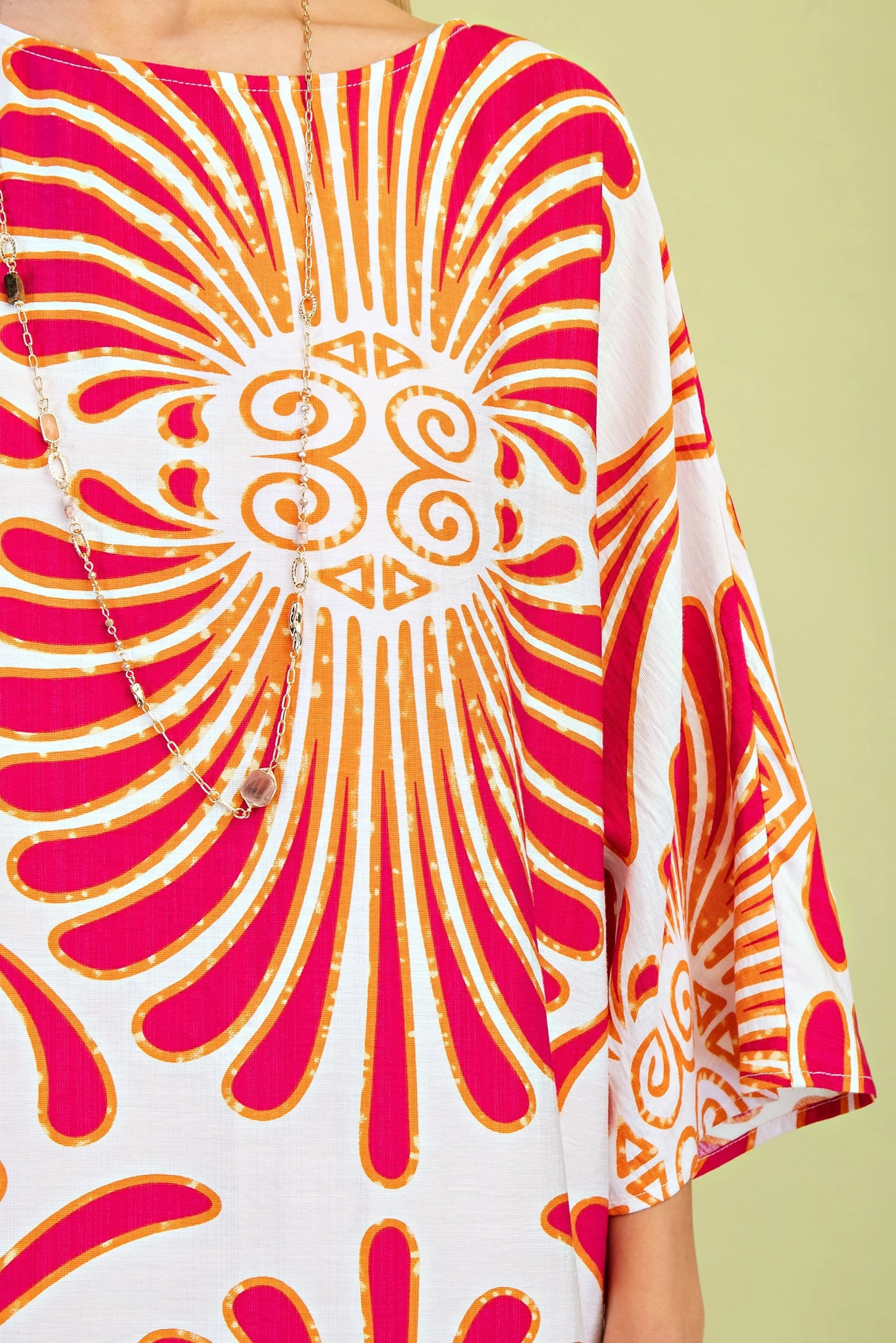 Bold Print Pull Over Boat Neck Dress with Side Slits