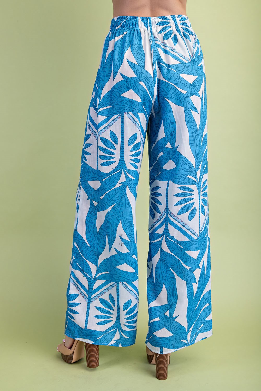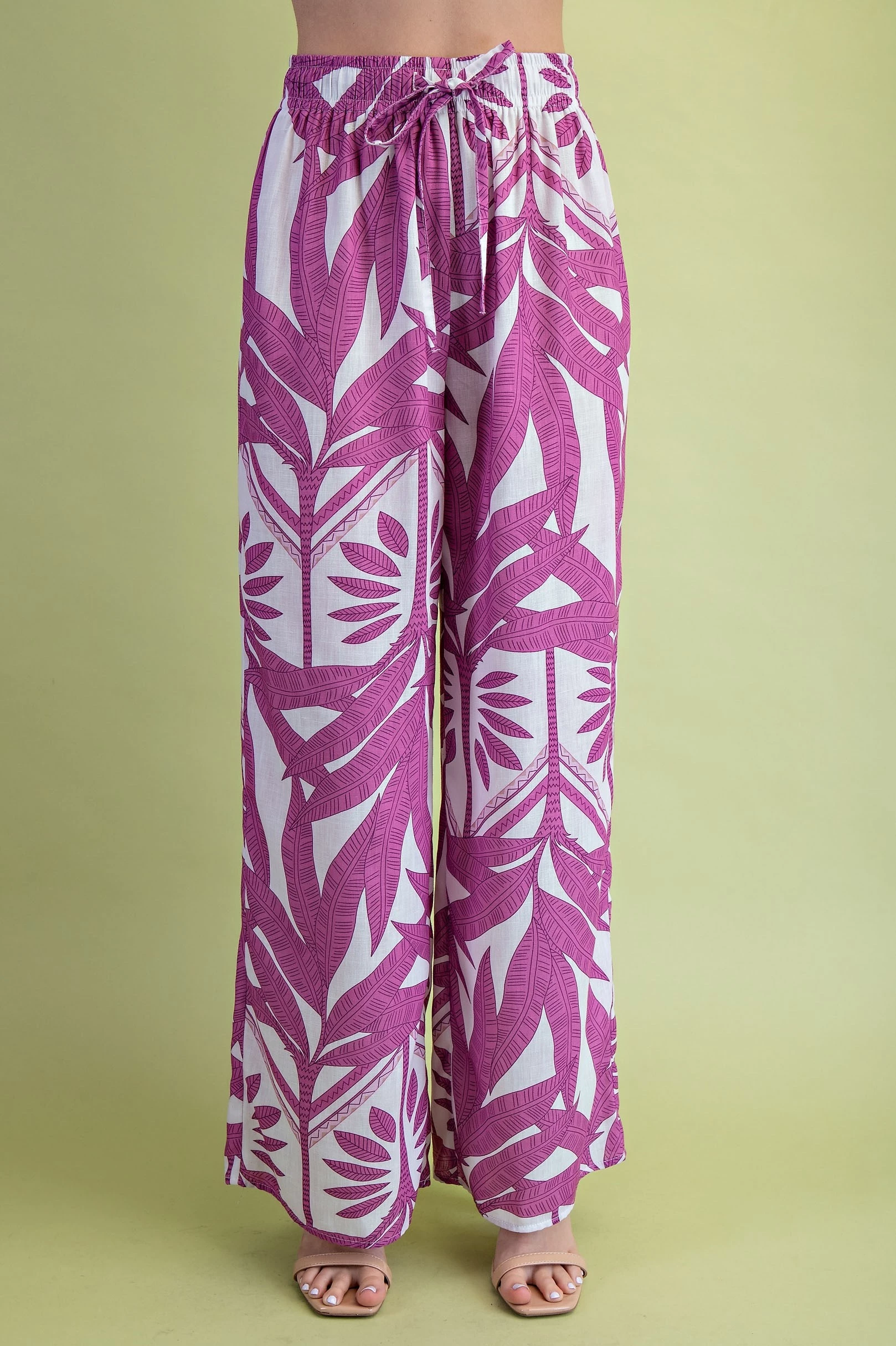Tropical Print Relaxed Fit Pants with Elastic Waist and Drawstring
