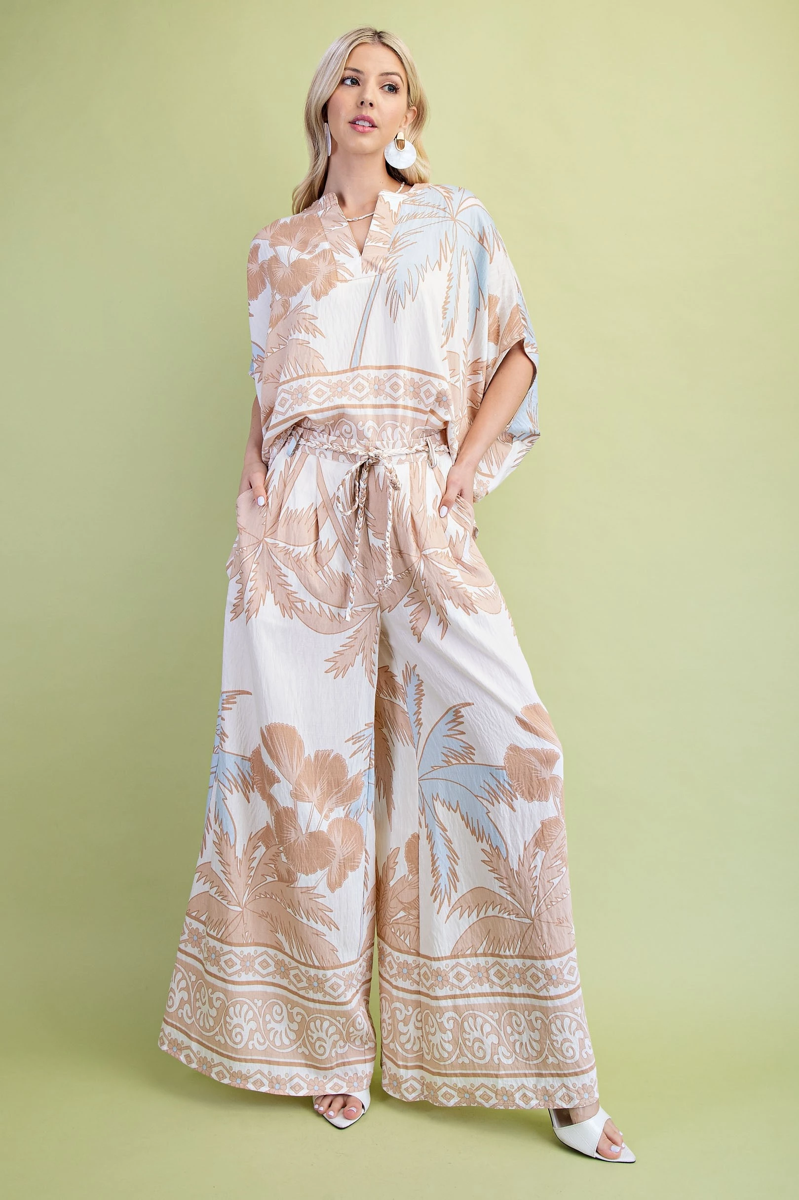 Mixed Tropical Print Relaxed Fit Top with Dolman Sleeves