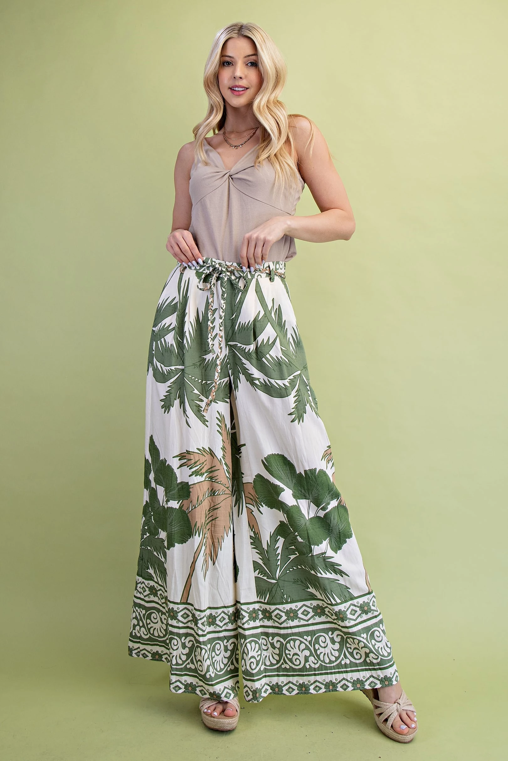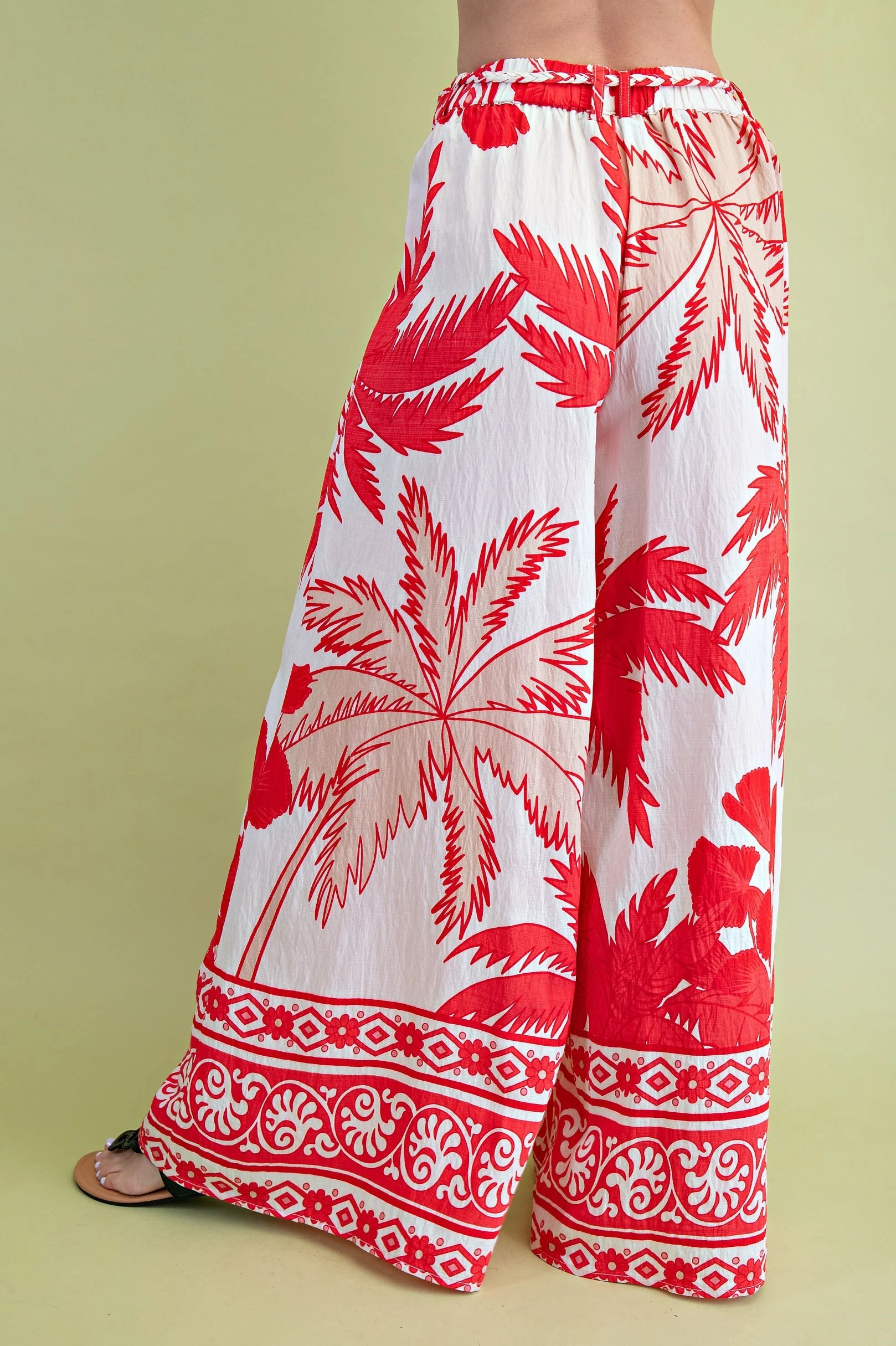 Printed Relaxed Fit Pants with an Elastic Waist and Drawstring. Full Lining Inside