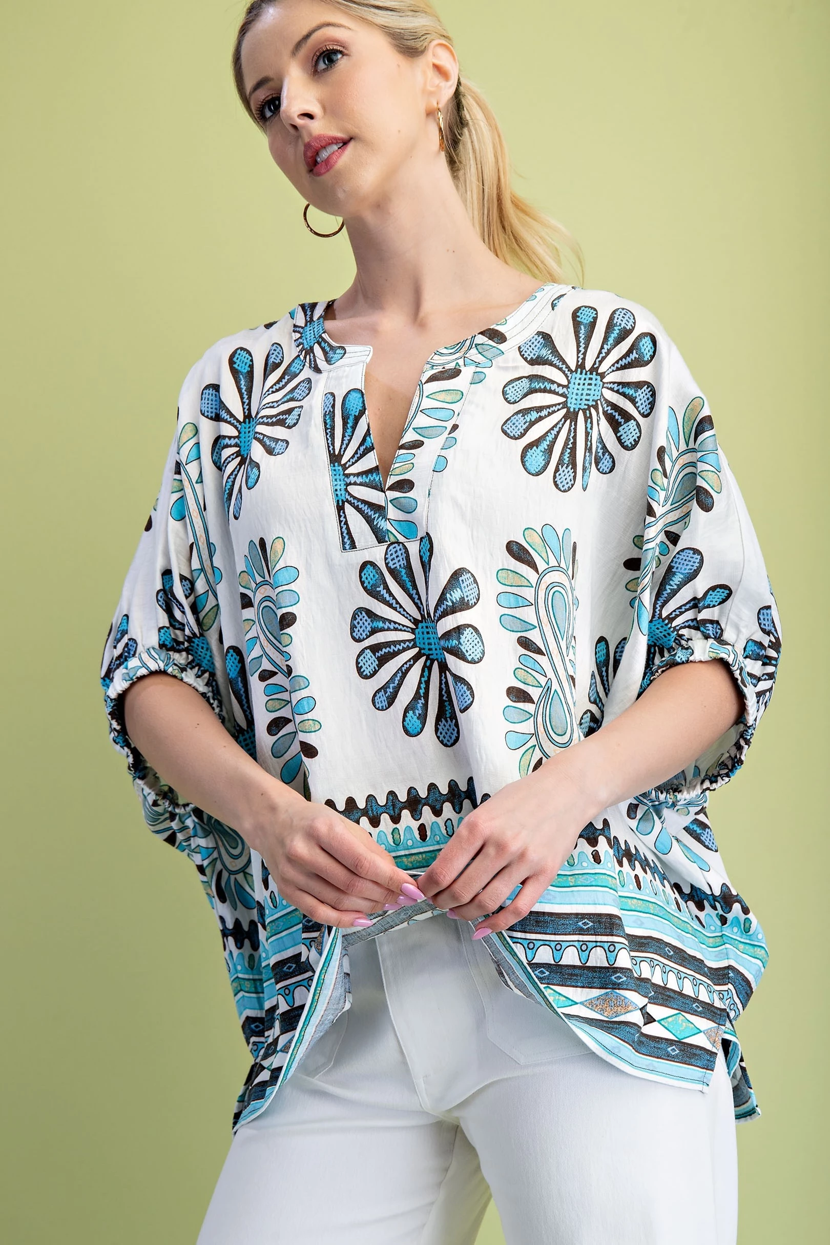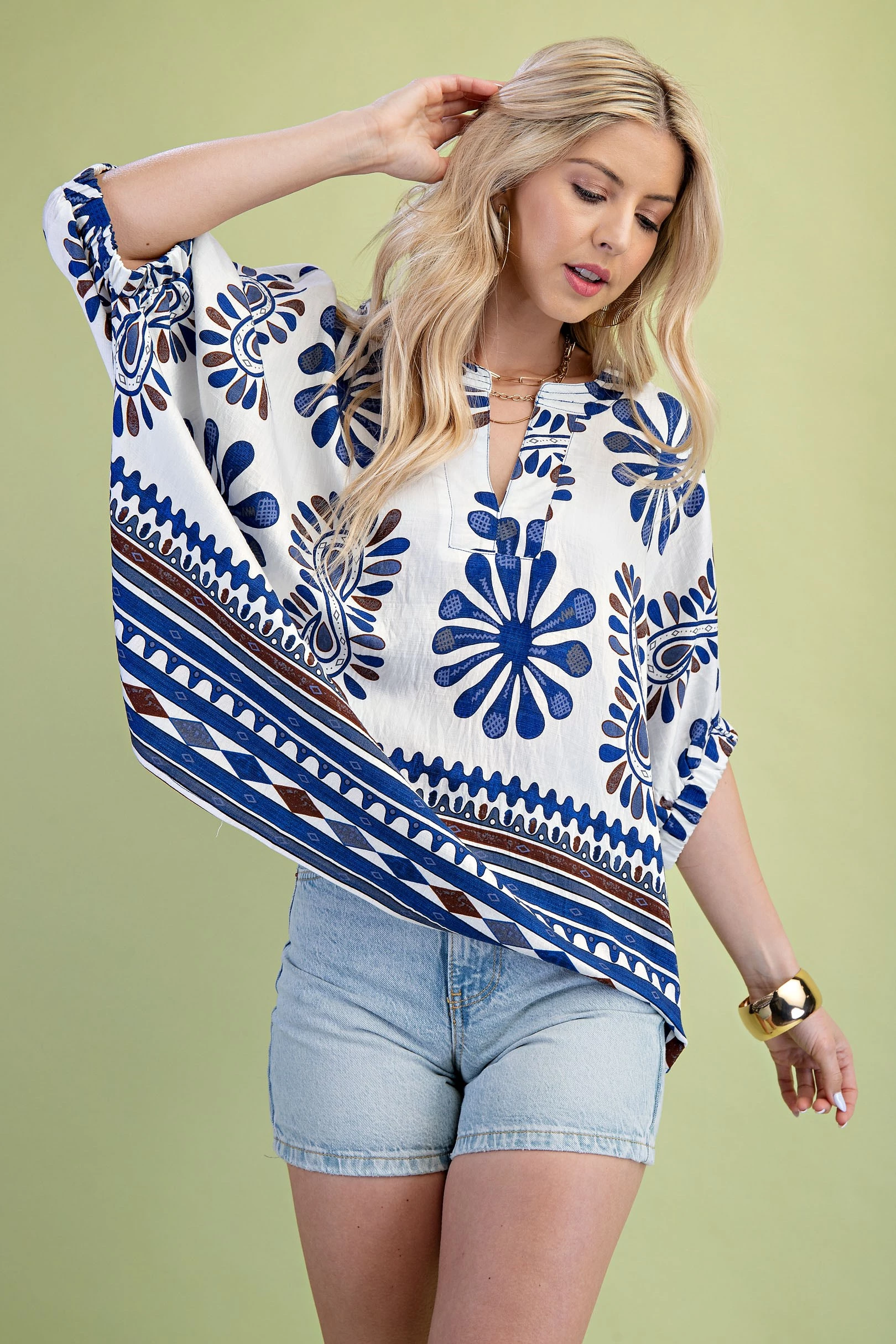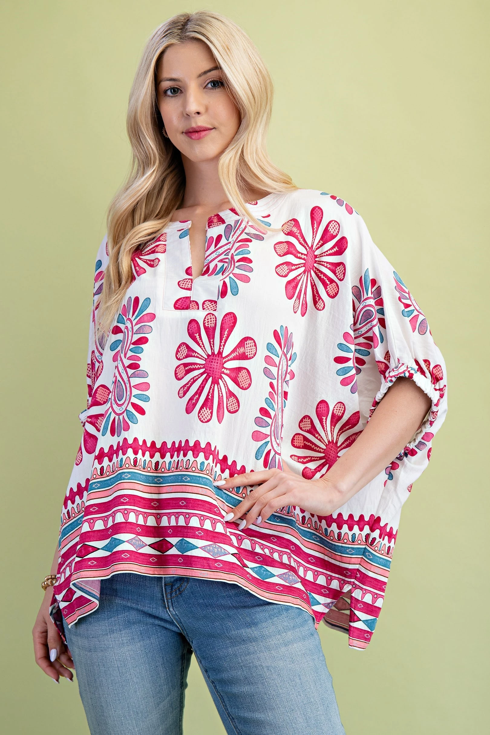 Printed Relaxed Fit Top with Dolman Sleeves