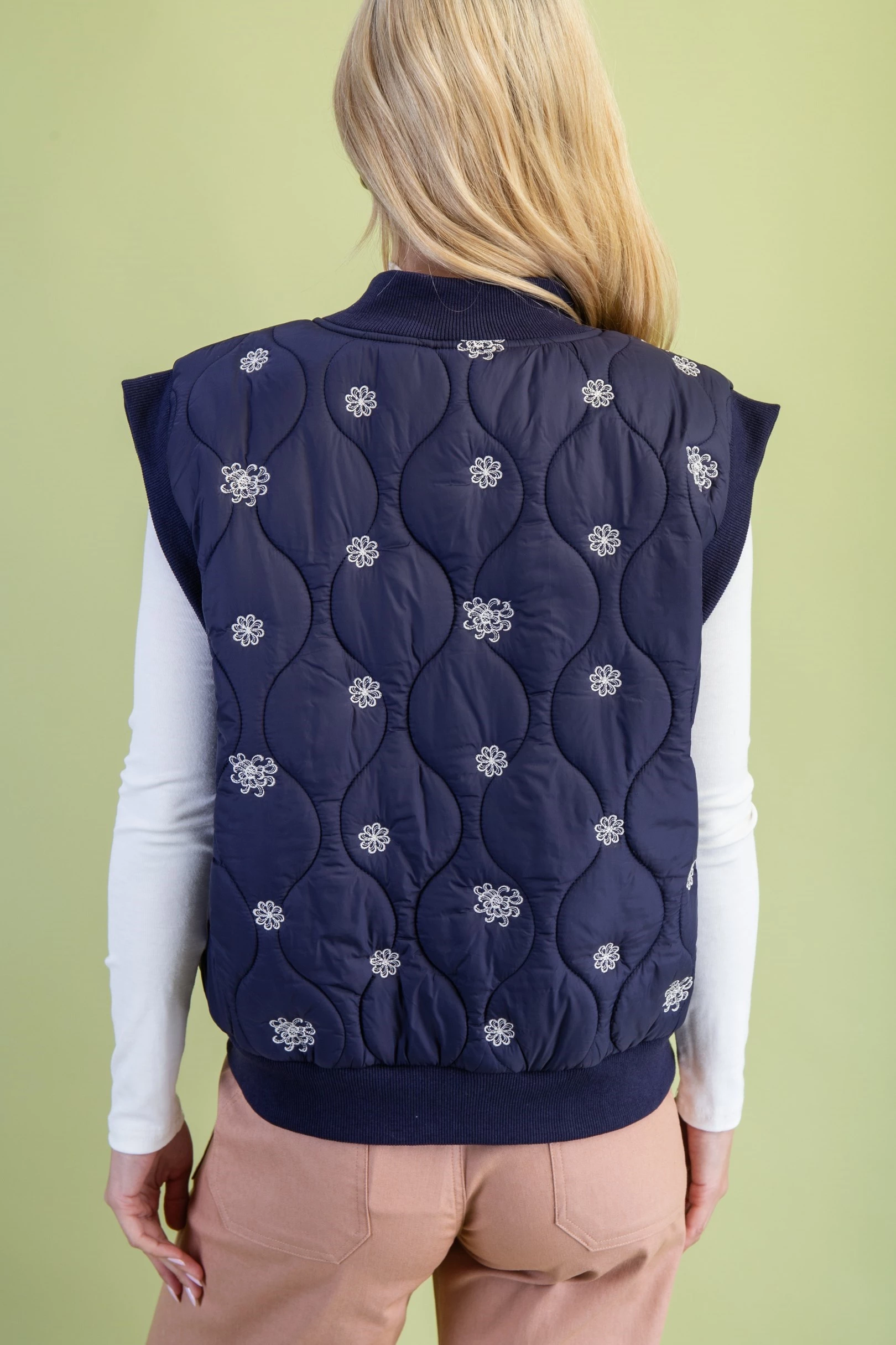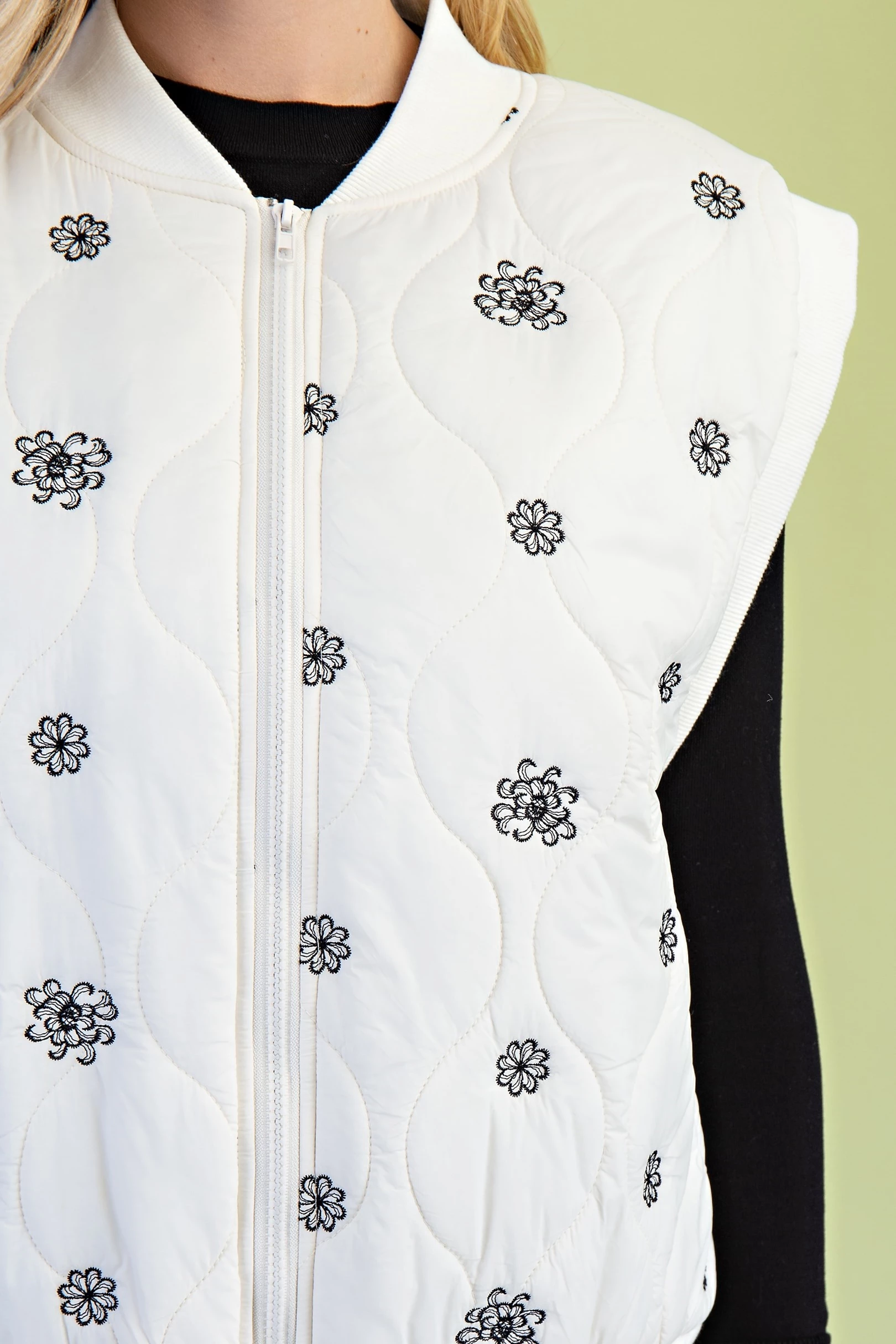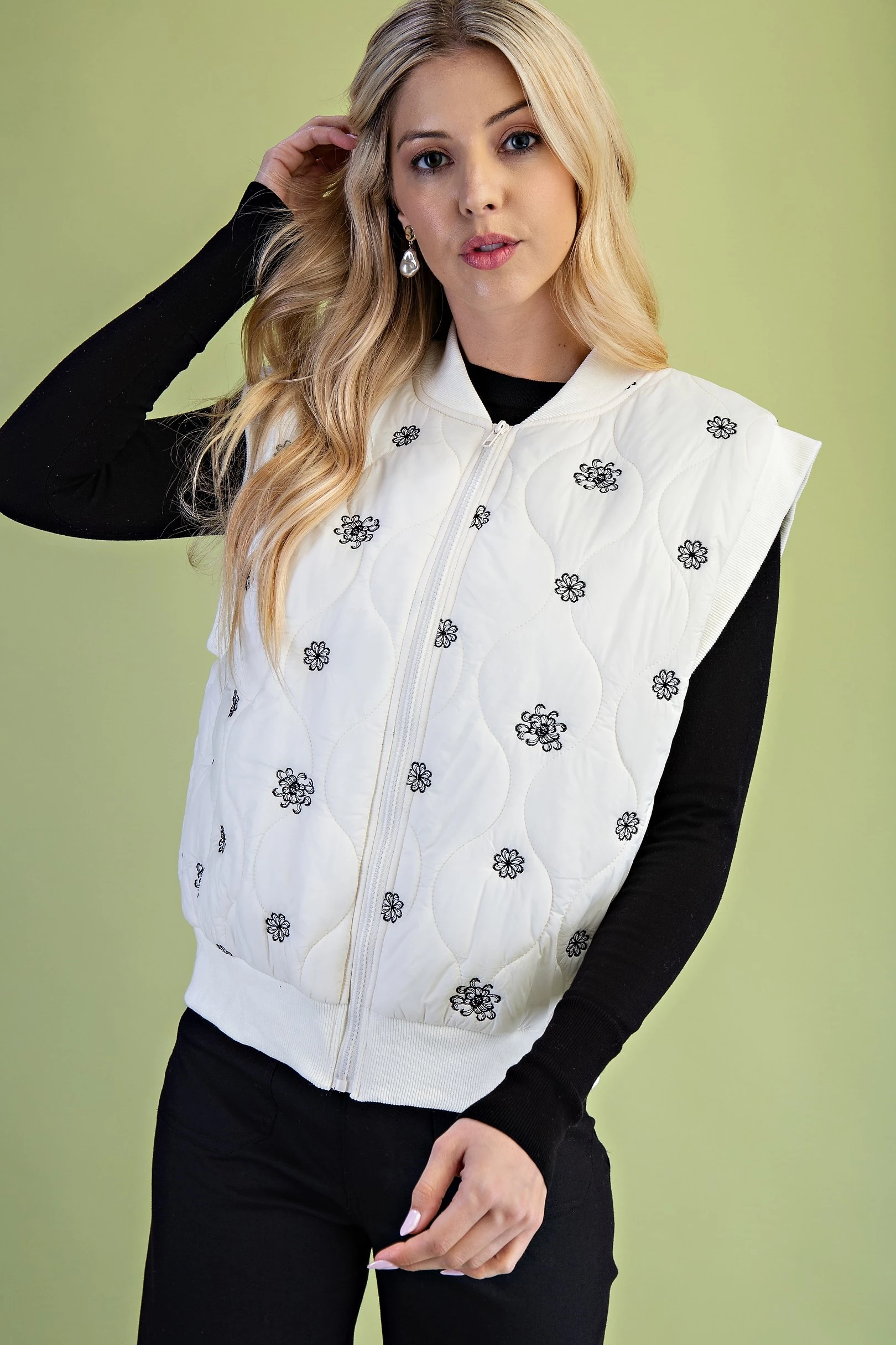 Crochet and Embroidered Short Sleeve Top with a Scalloped Hem. The Top is Lined