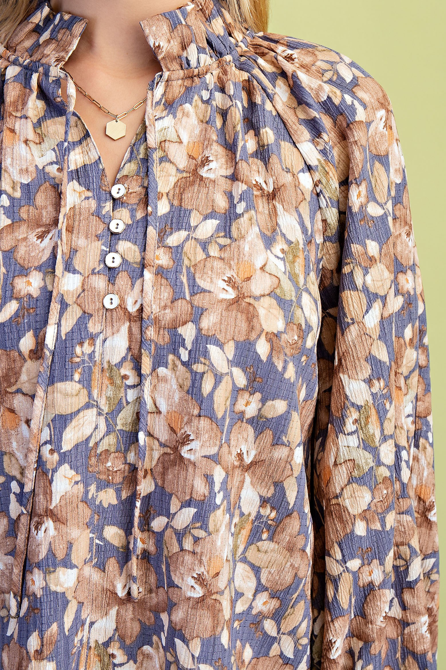 Floral Print High Ruffle Collar Blouse with a Front Tie Neck and Balloon Sleeves