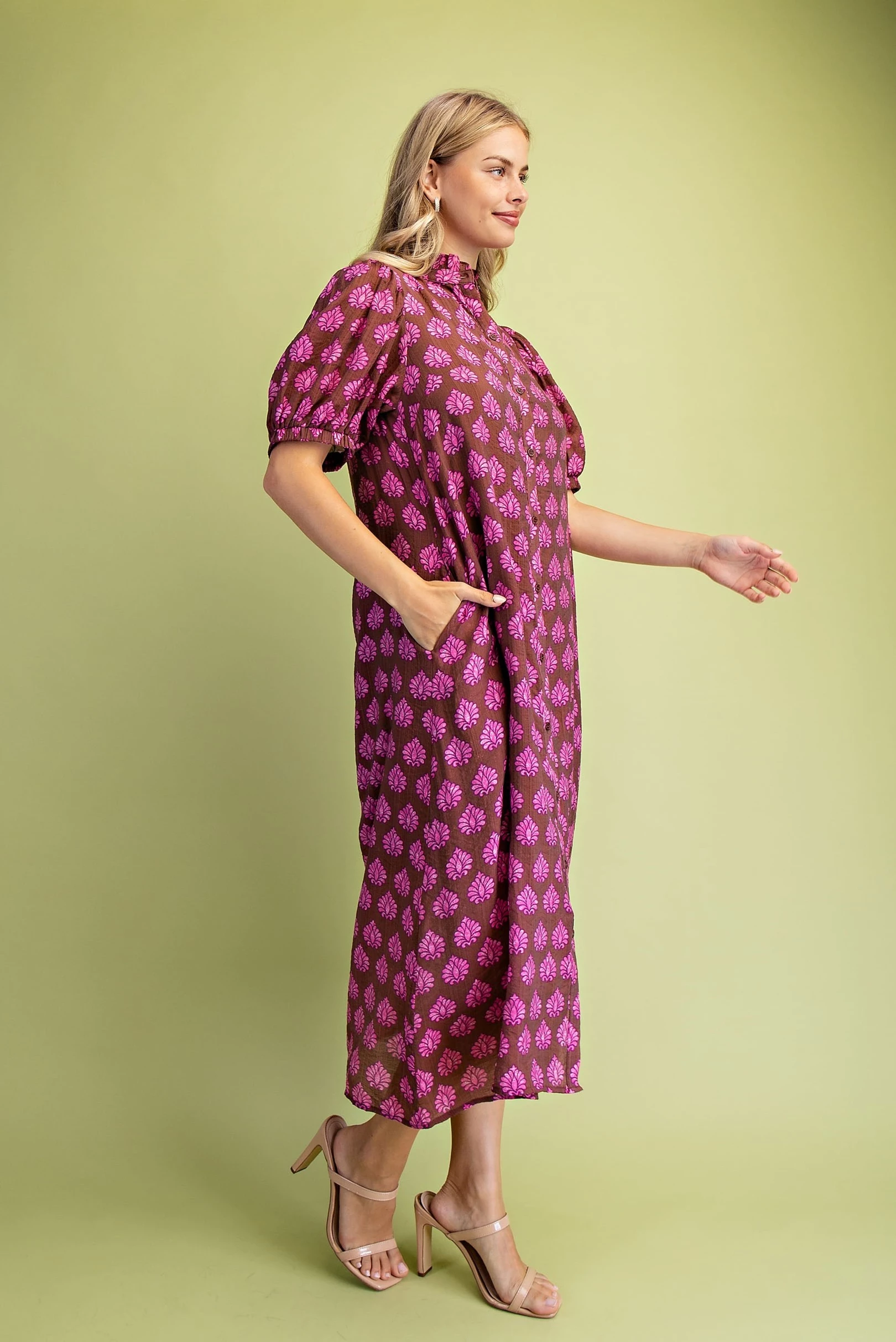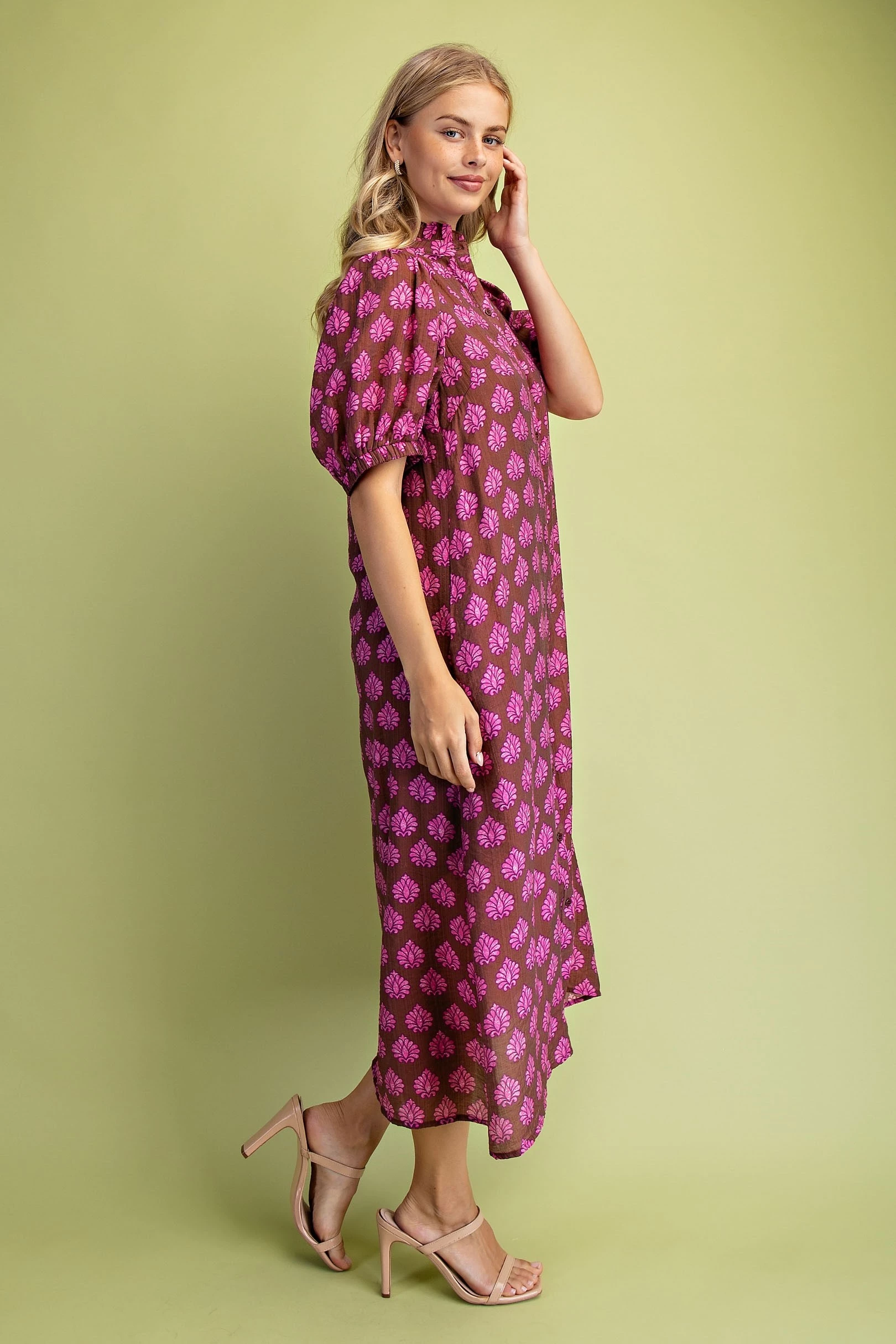 Mixed Paisley Print Dress with a Smocked Front Yoke
