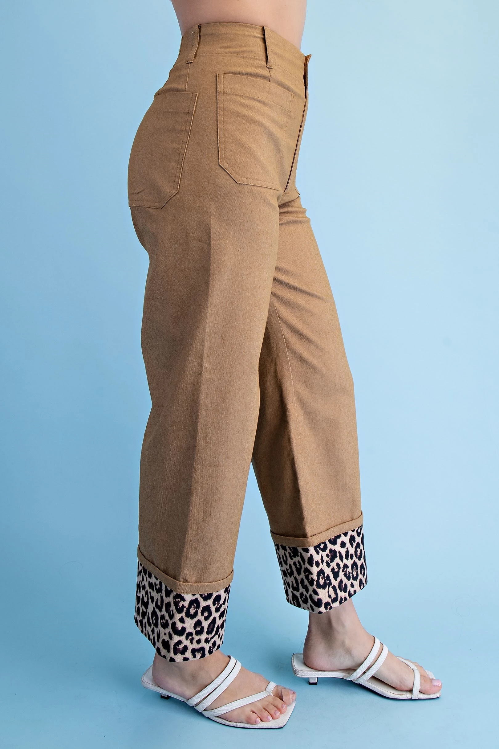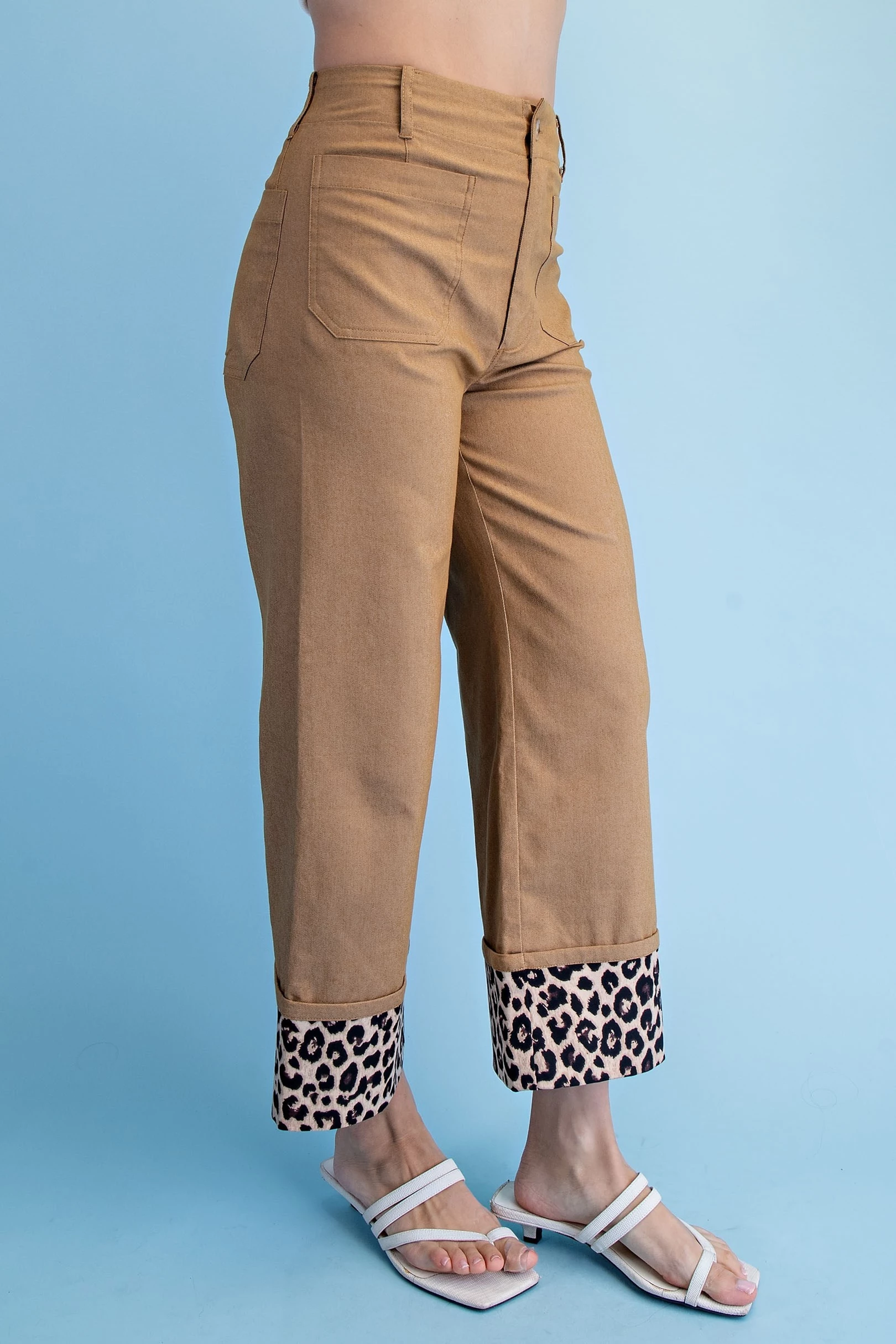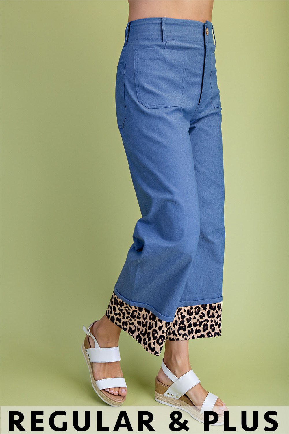 Cropped Wide Leg Pants with Contrast Stitching