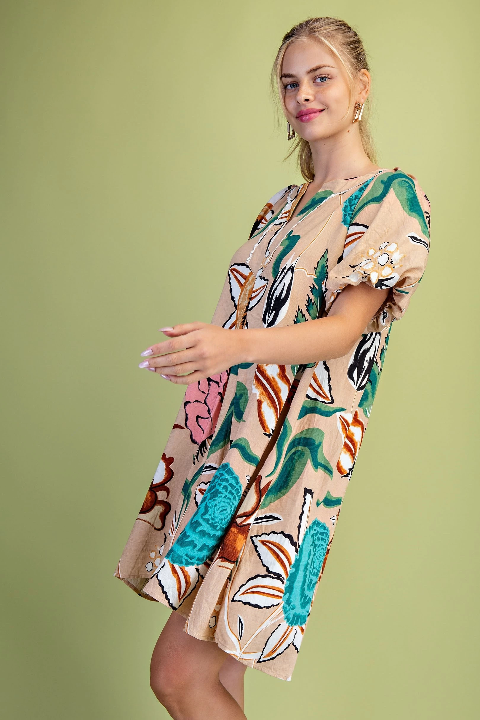 Peter Pan Collar Button Down Mini Dress with Short Puff Sleeves