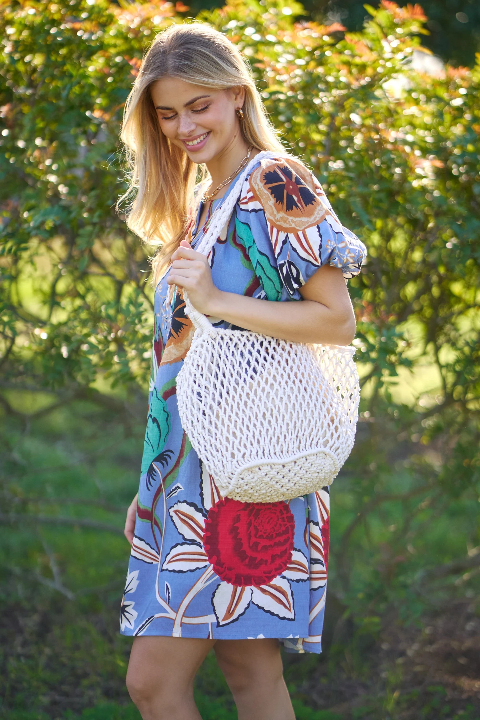 Vibrant Floral Round Neck Blouse with Scalloped Hem Details