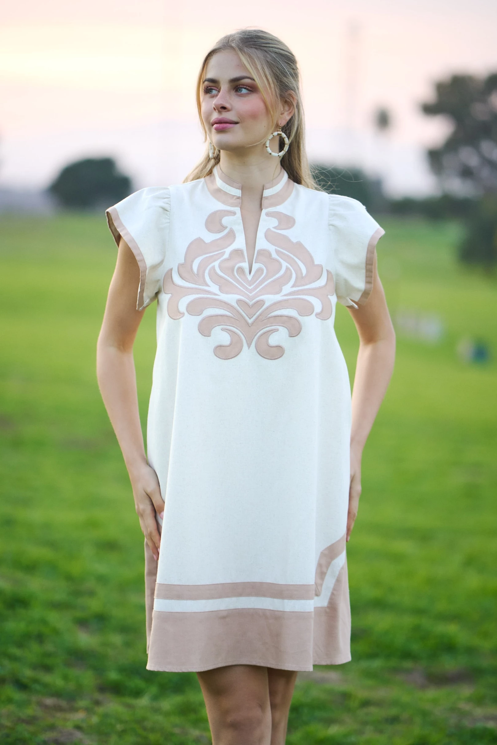 Paneled Textured Round Neck Mini Dress with Seaming Details