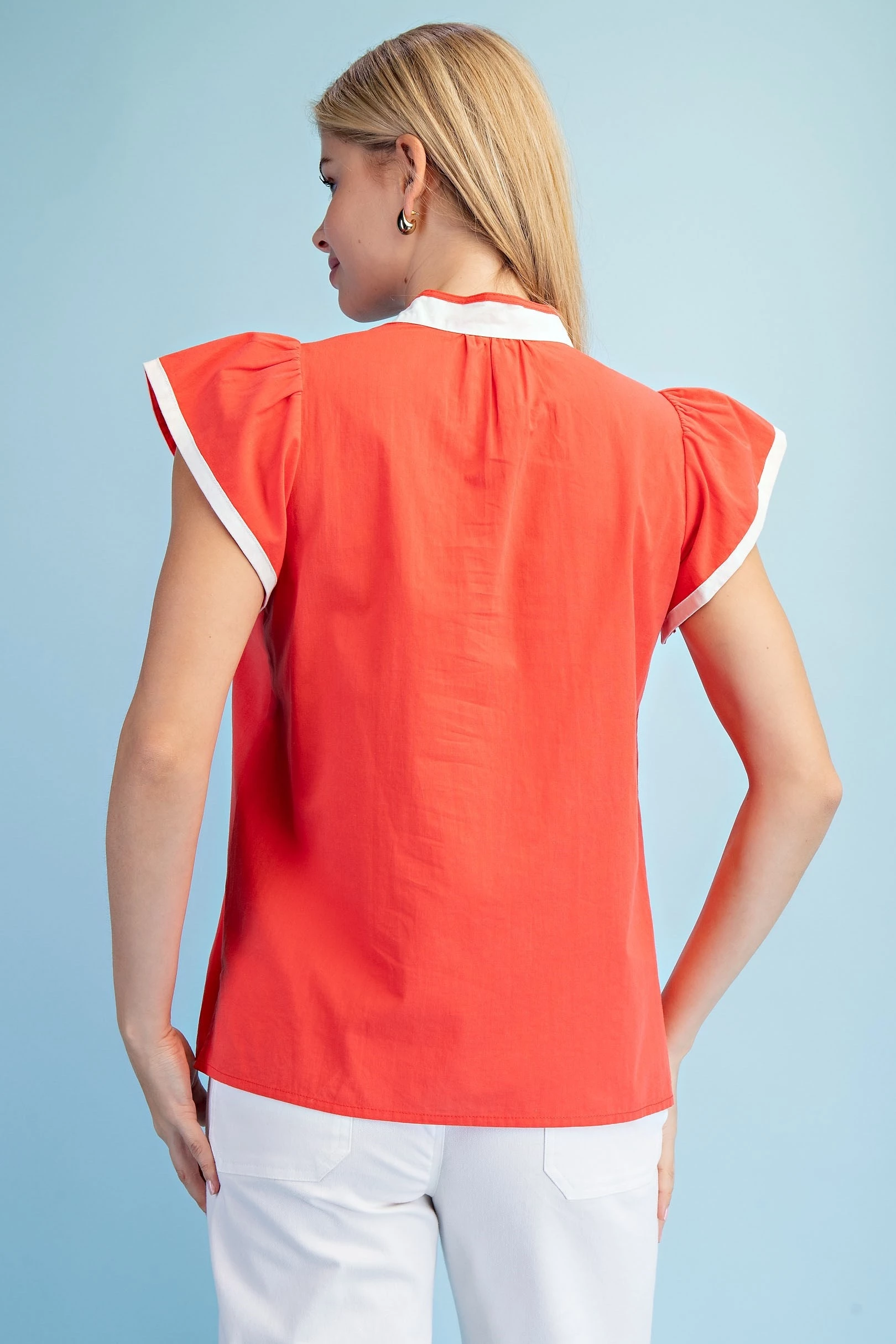 Linen V-Neck Top with a Padded Cap Sleeve