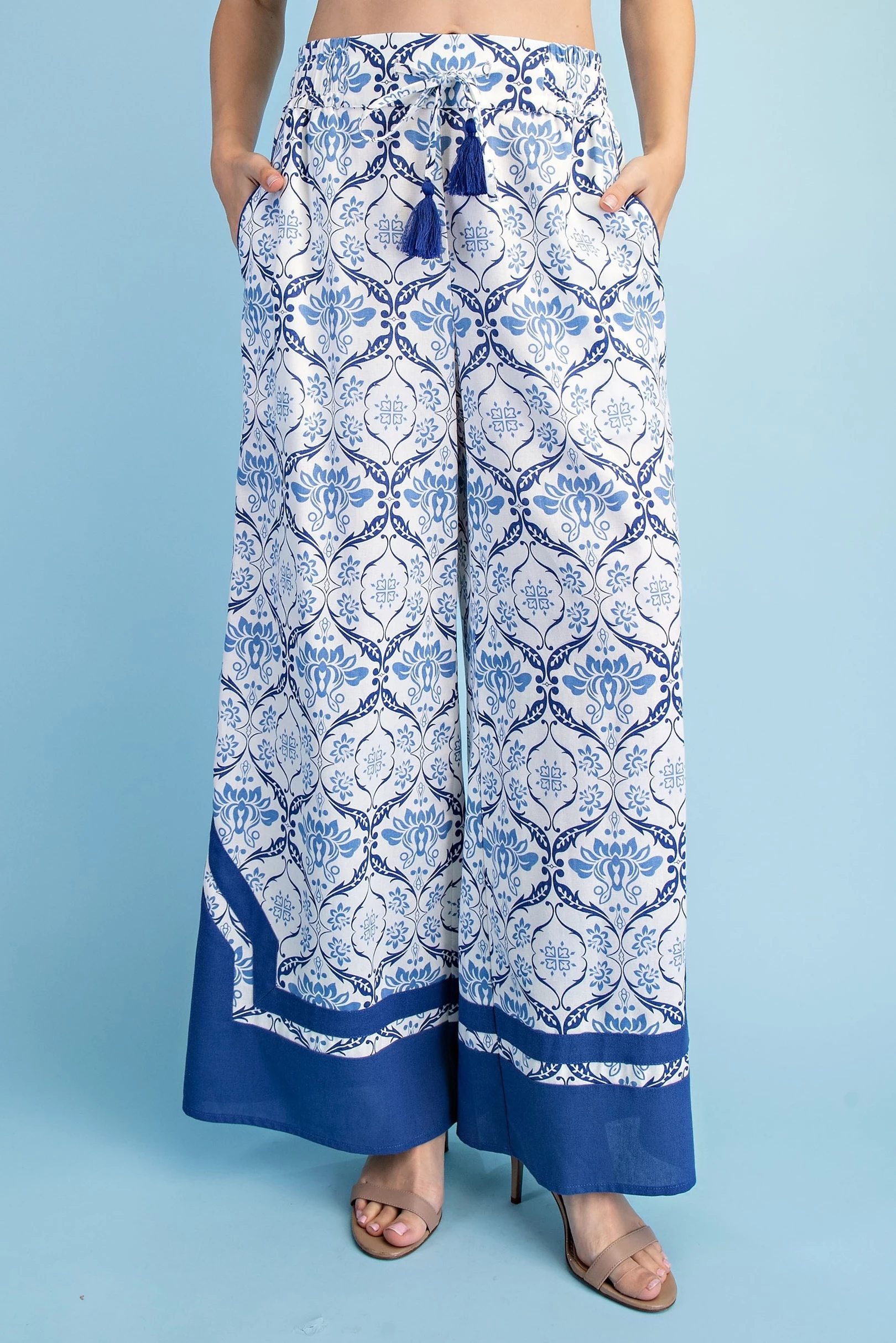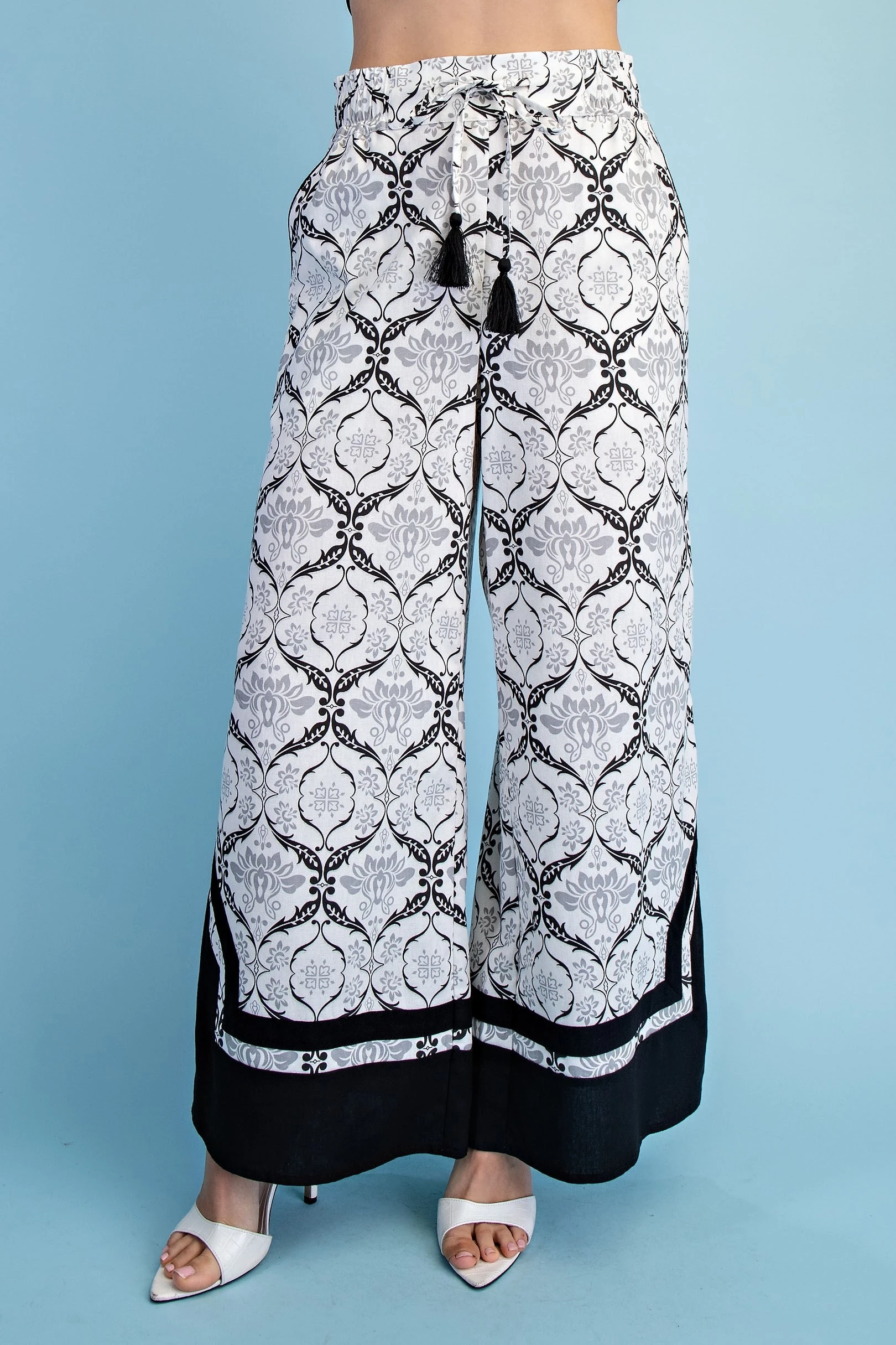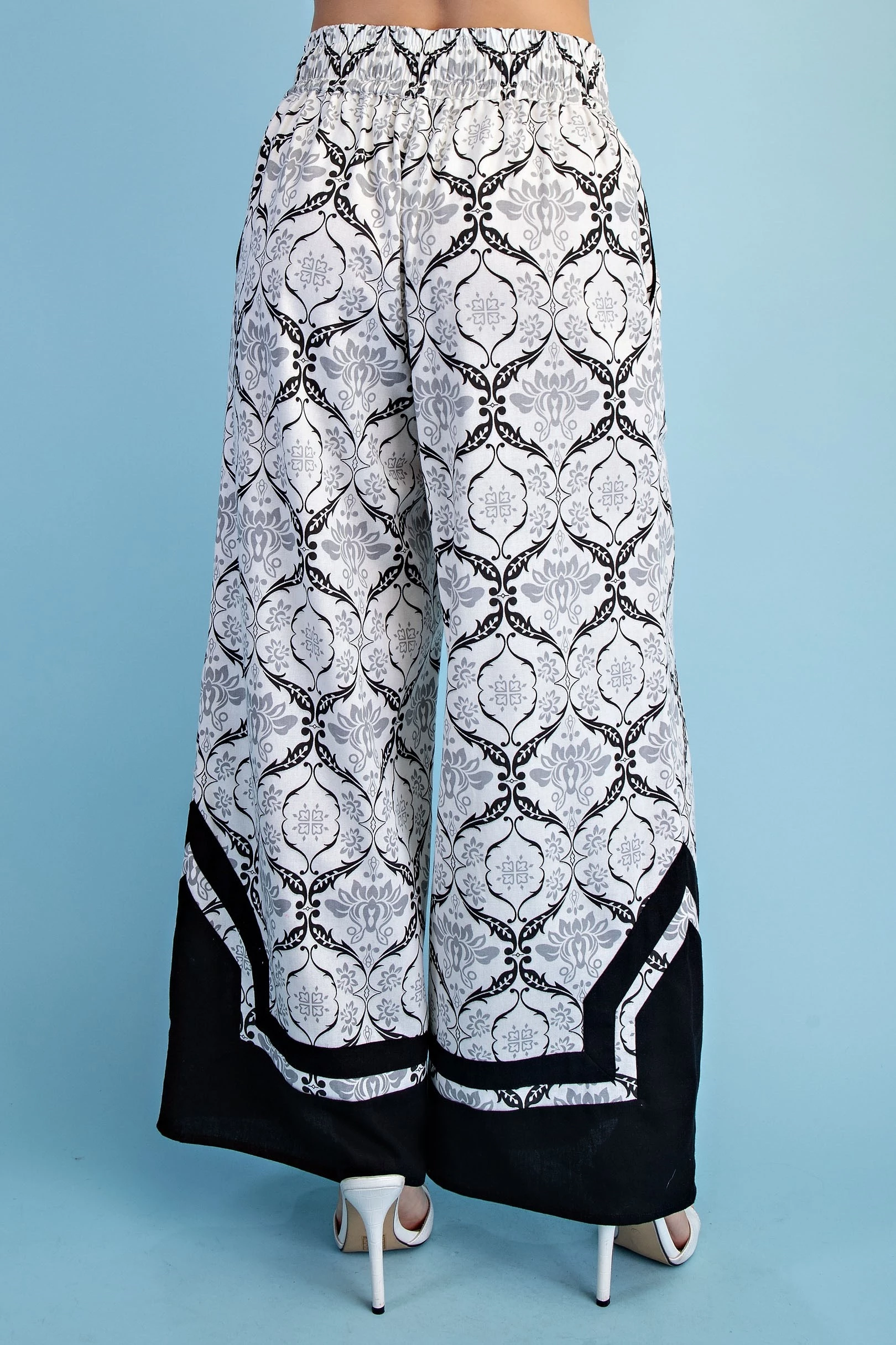 Printed Voluminous Wide Leg Pants with an Elastic Waist and Drawstring