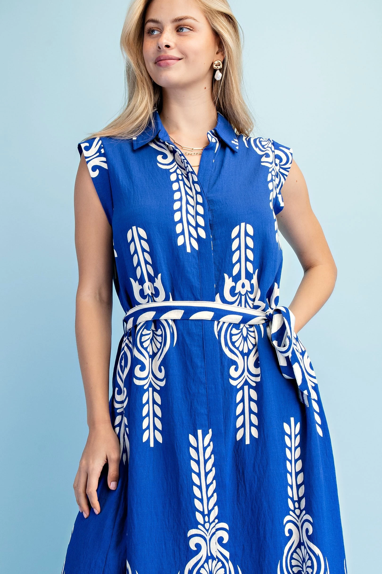 Printed V-Neck Mini Dress with a Lace Stripe on a Contrasting Collar. The Dress is Lined