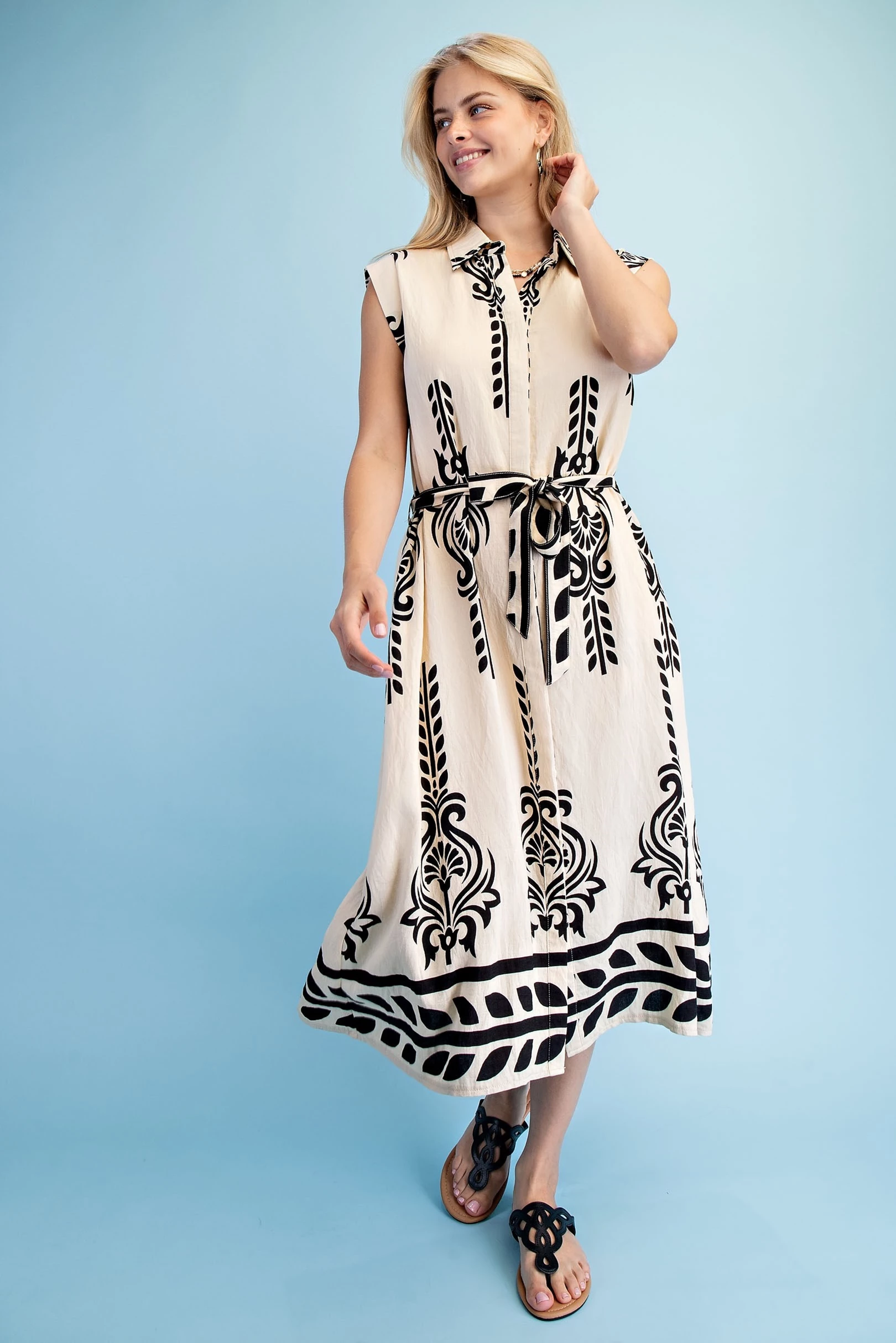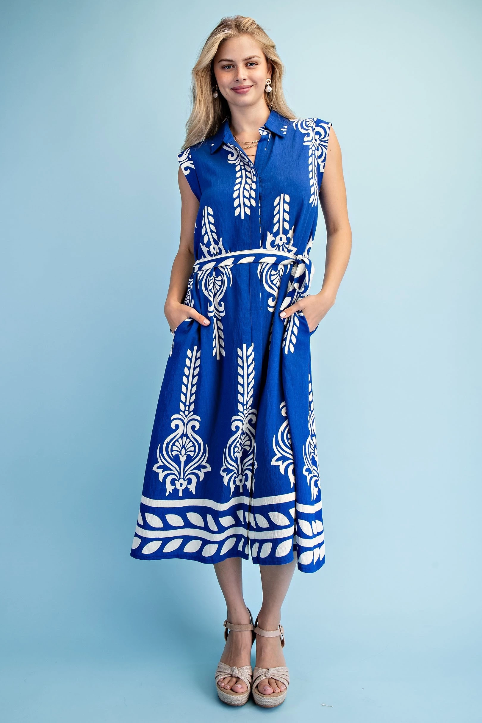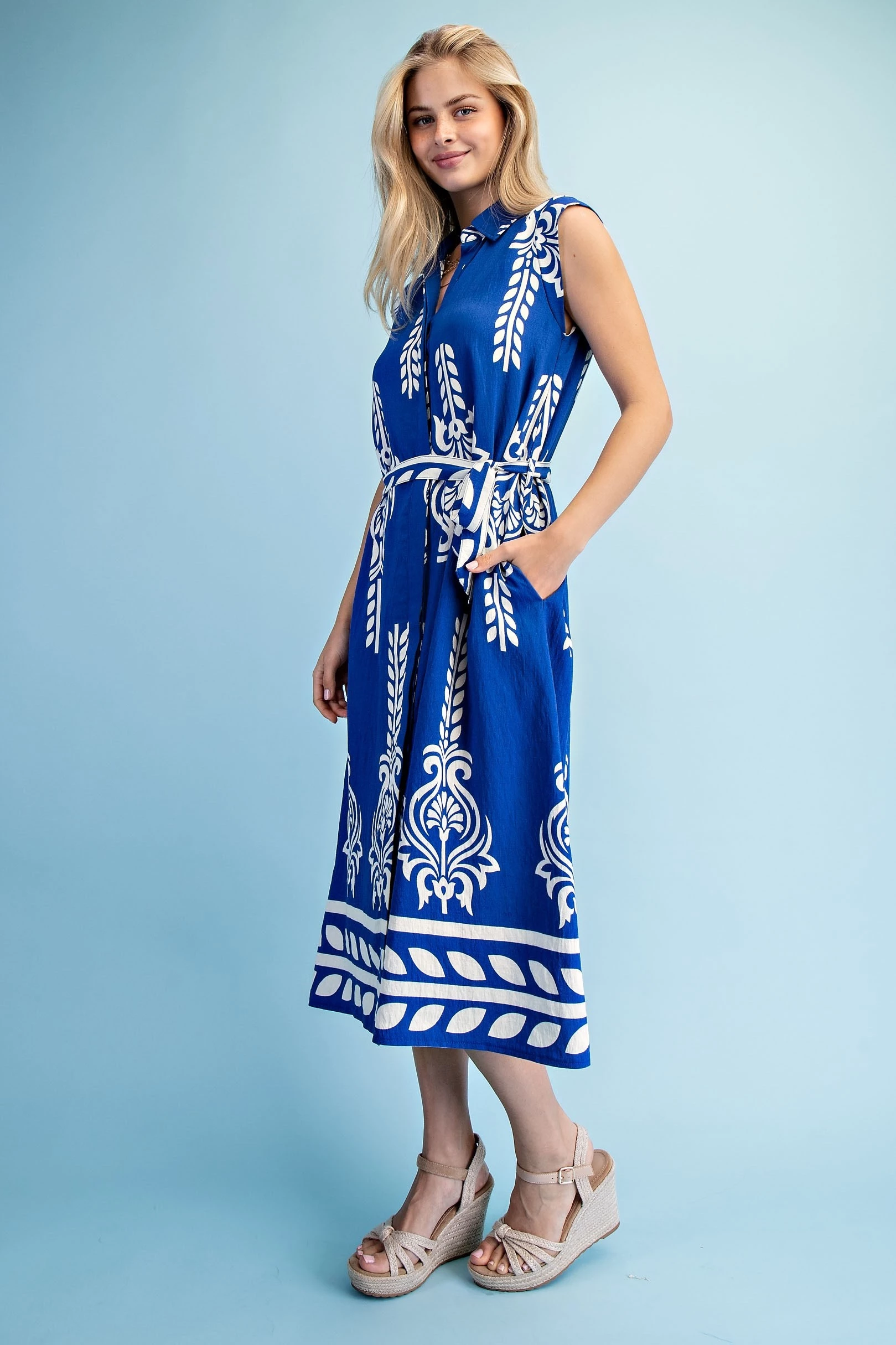 Floral Midi Dress with a Front Zipper and Smocked Waist
