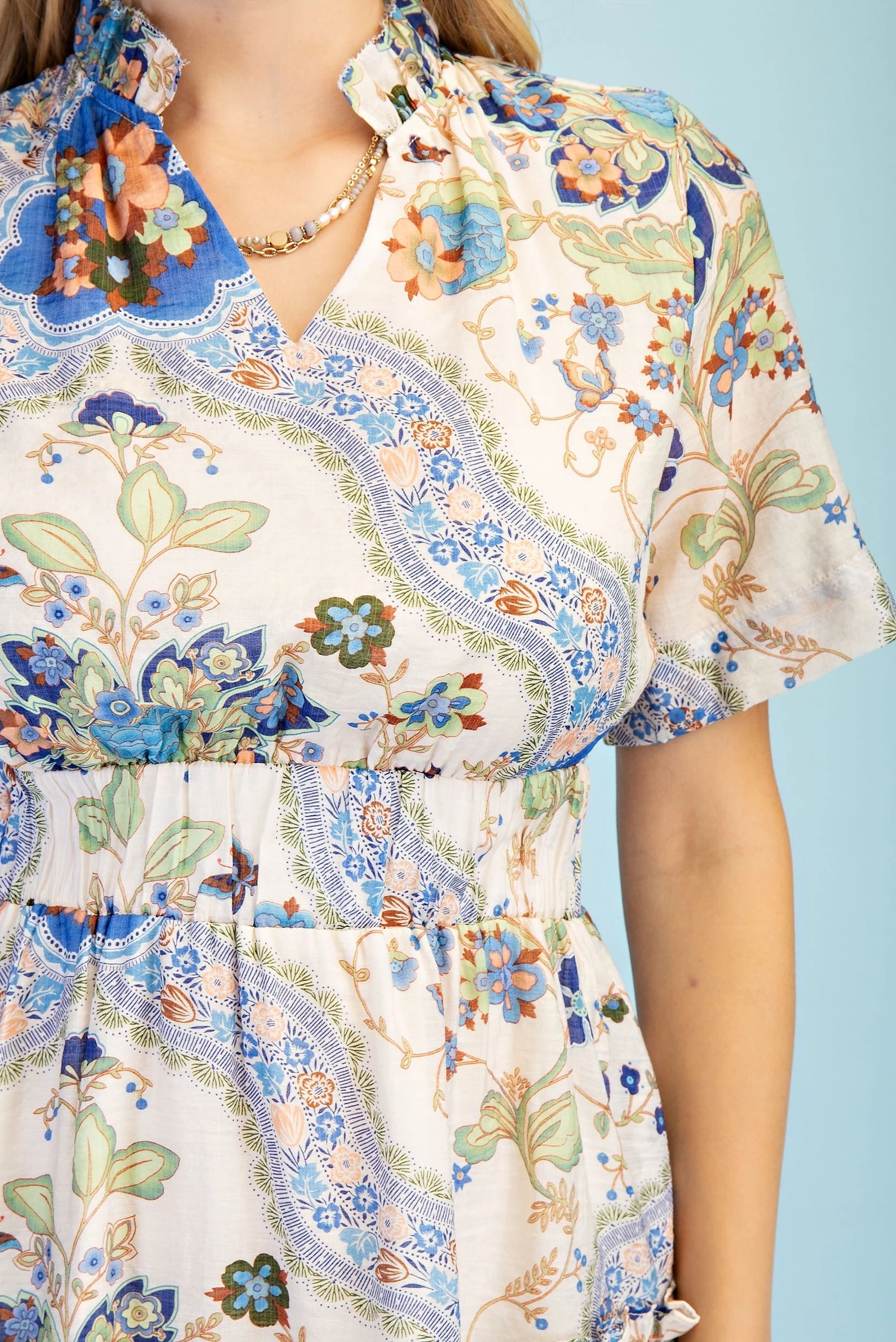 Mixed Paisley Print Dress with a Smocked Front Yoke