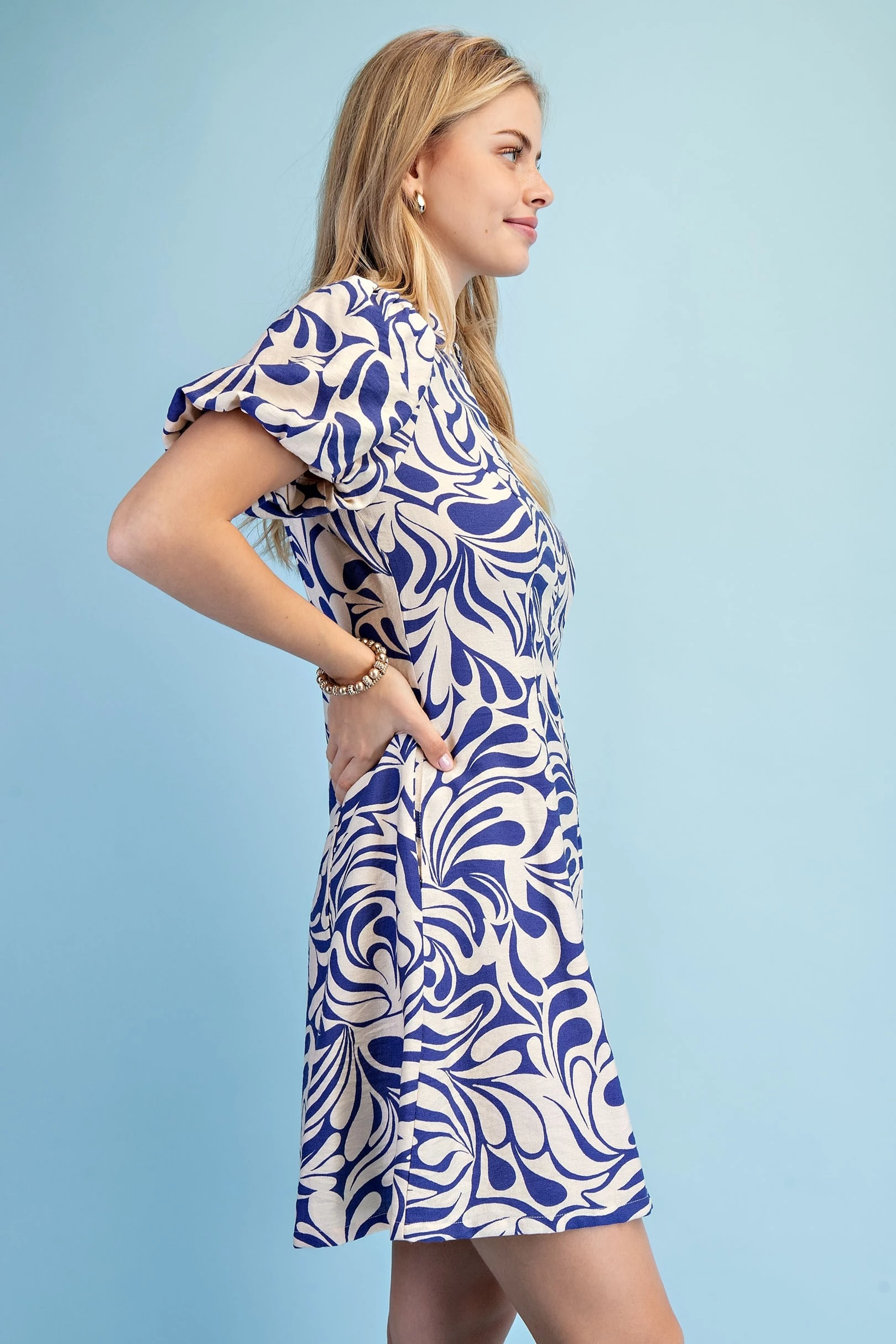 Printed A-Line Mini Dress with a Collar and an Invisible Front Zipper