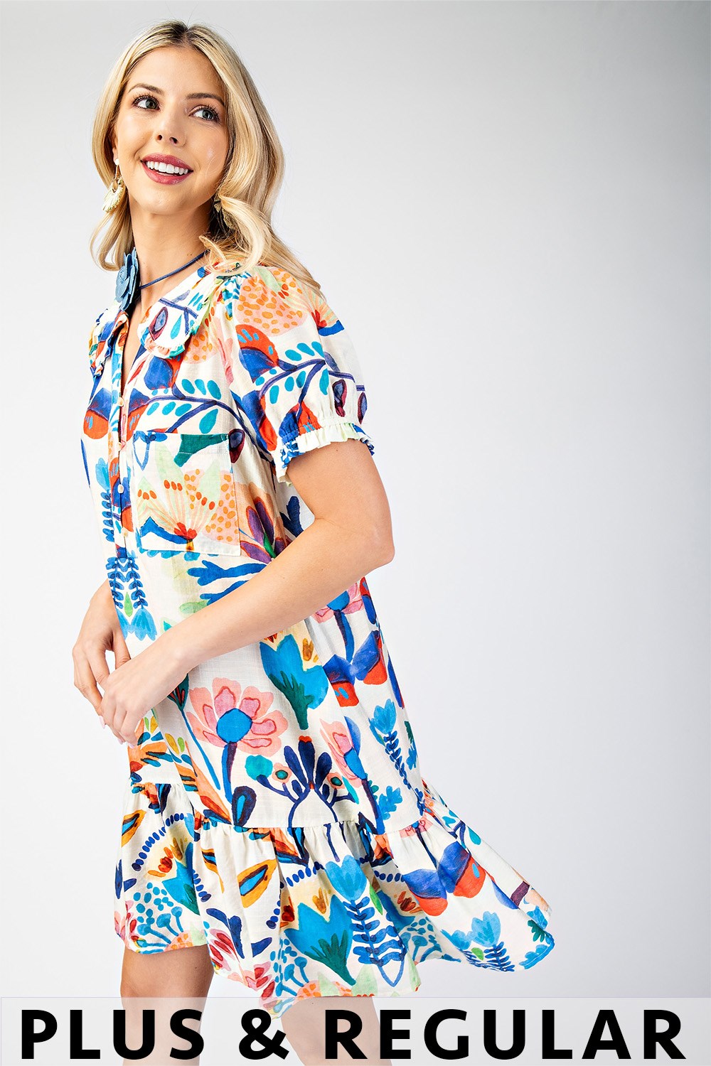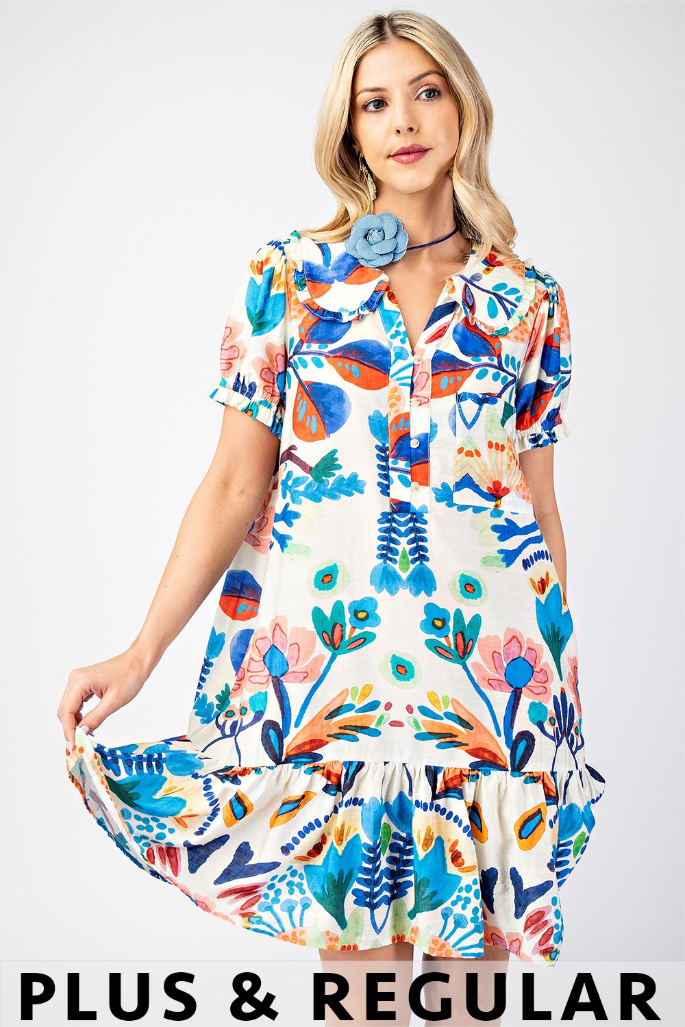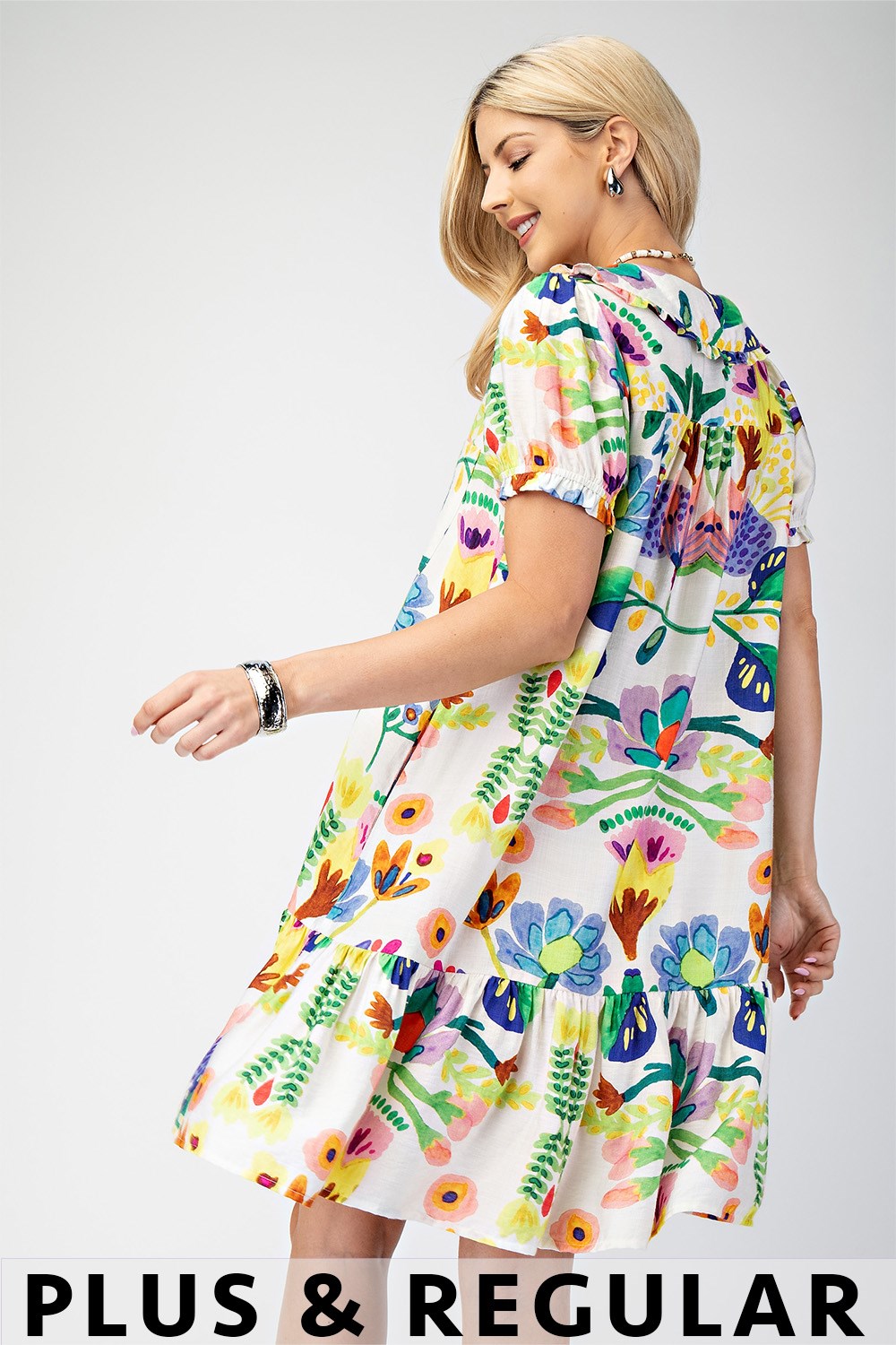 Peter Pan Collar Button Down Mini Dress with Short Puff Sleeves