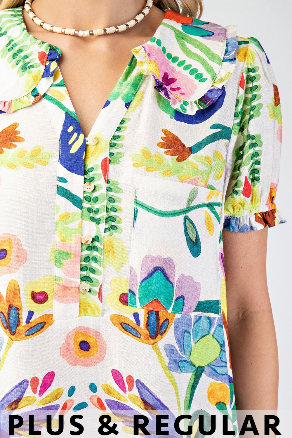 Floral Printed Button Down Top with 3/4 Length Gathered Balloon Sleeves