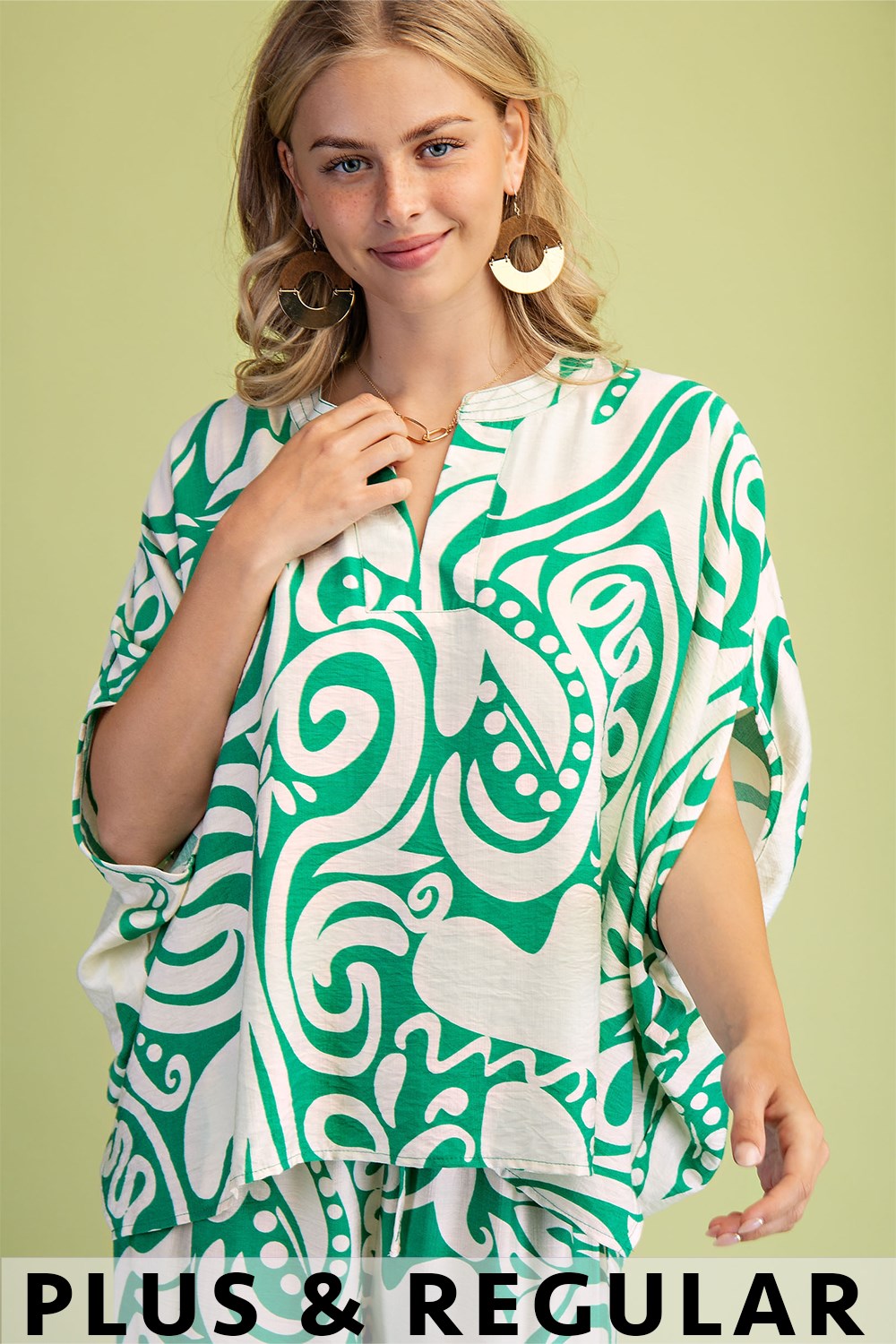 Trim Detail Button Down Blouse with 3/4 Length Gathered Balloon Sleeves