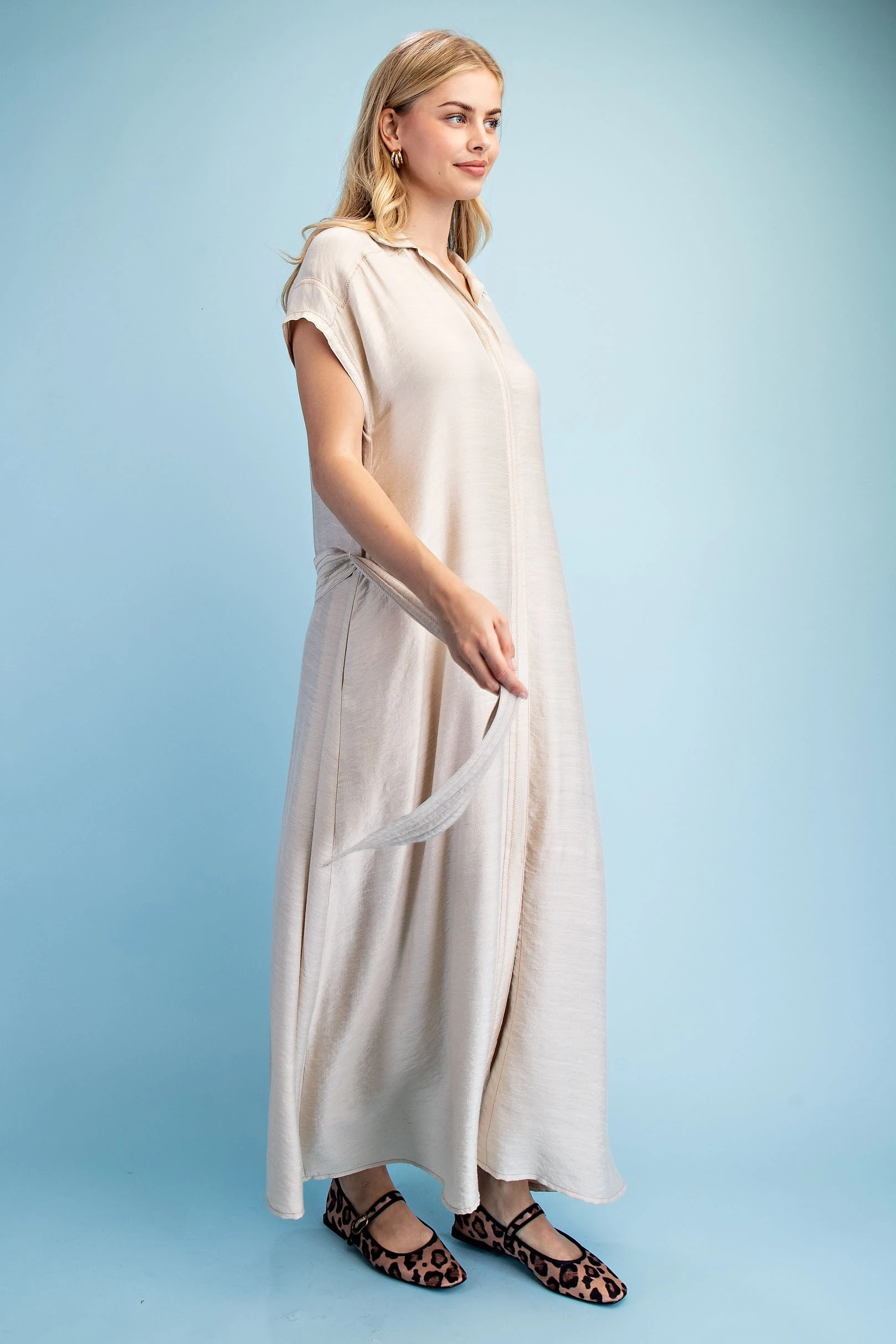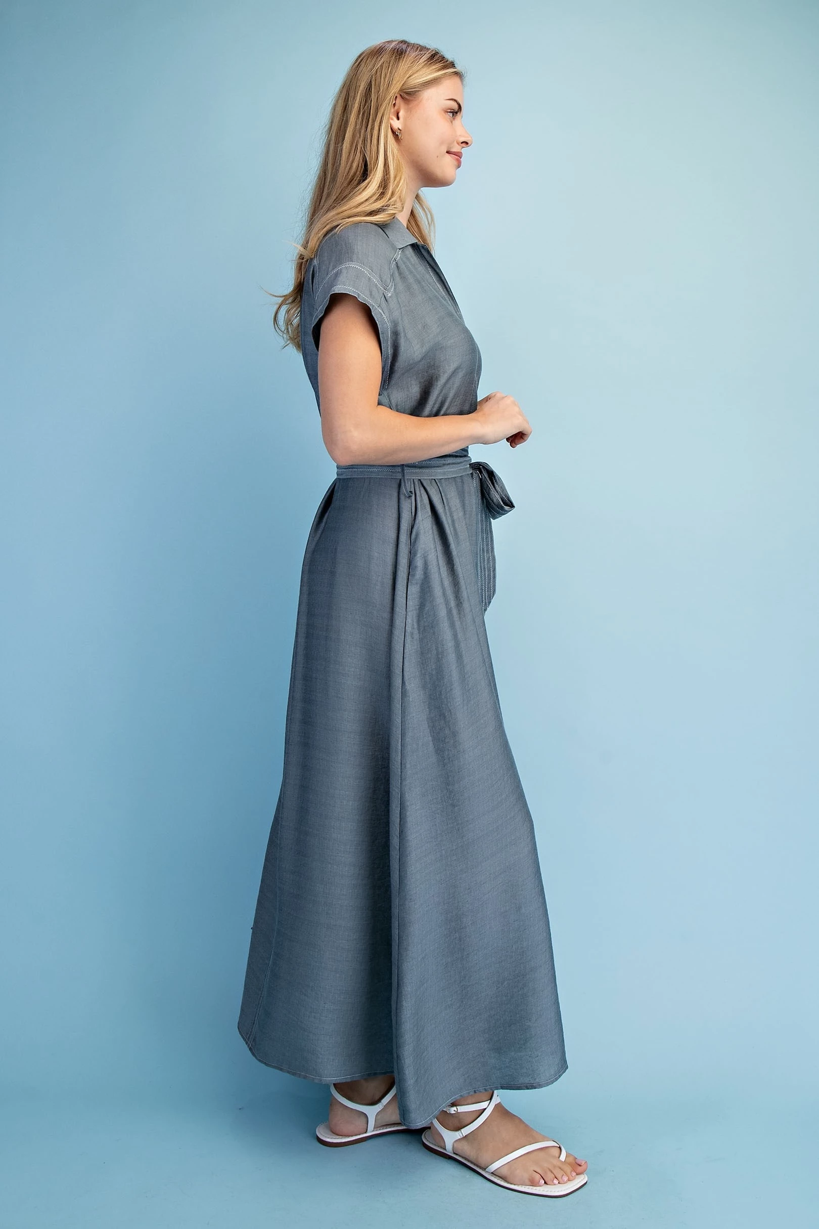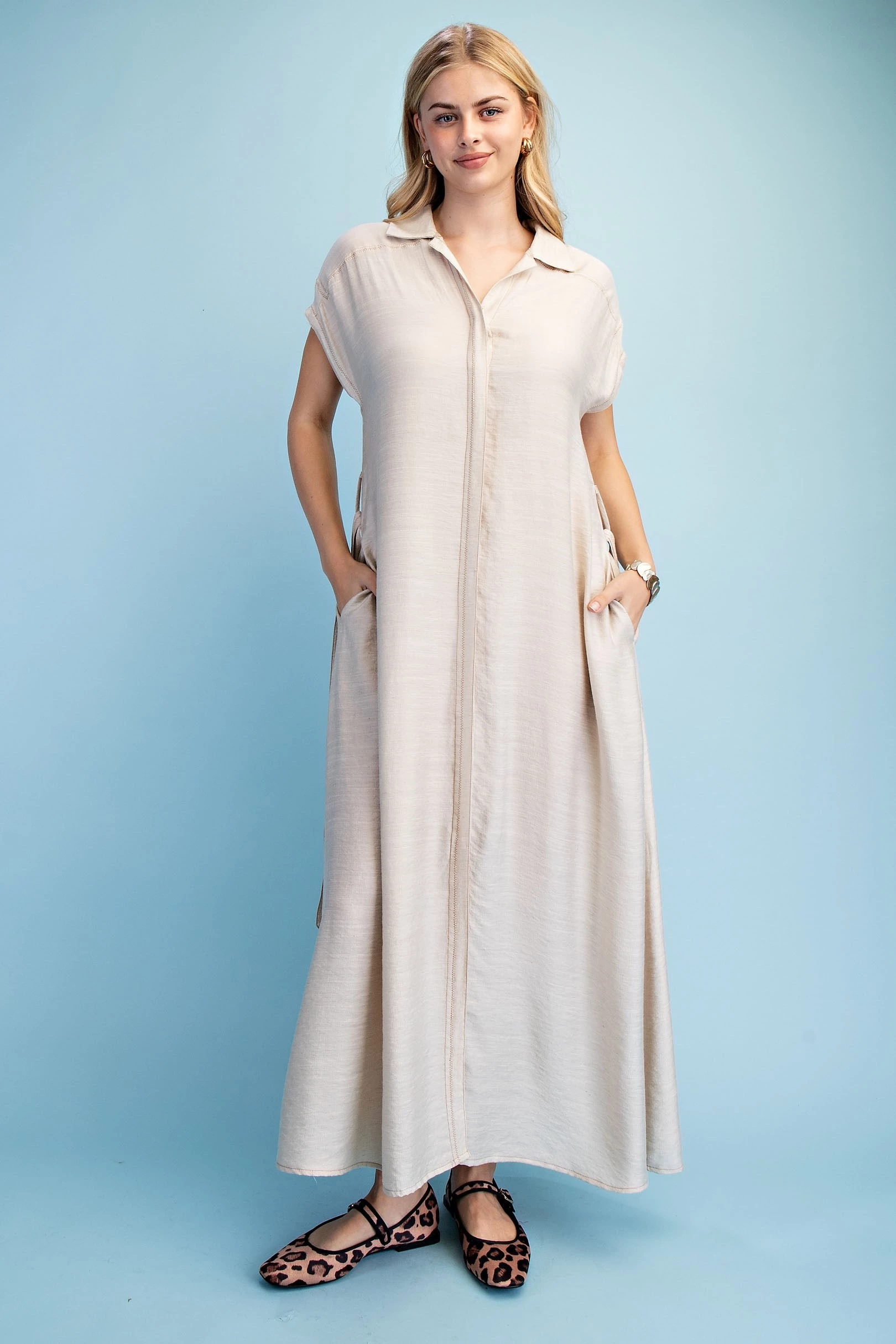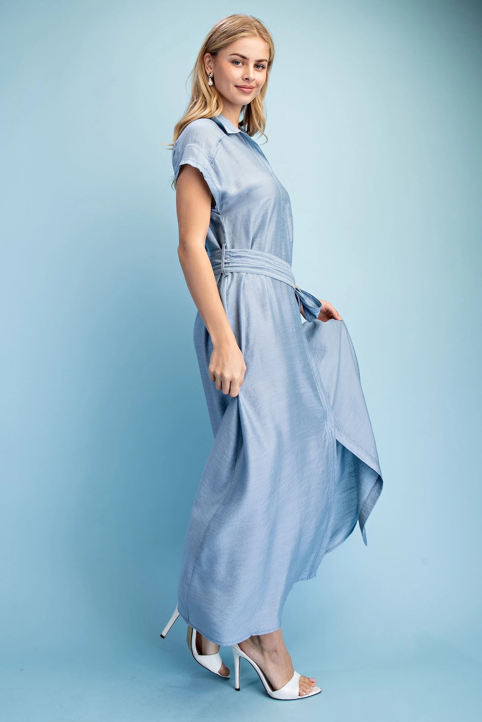 Ankle Cropped Summer Pants in a Stretchy Denim-Like Fabric with Pockets