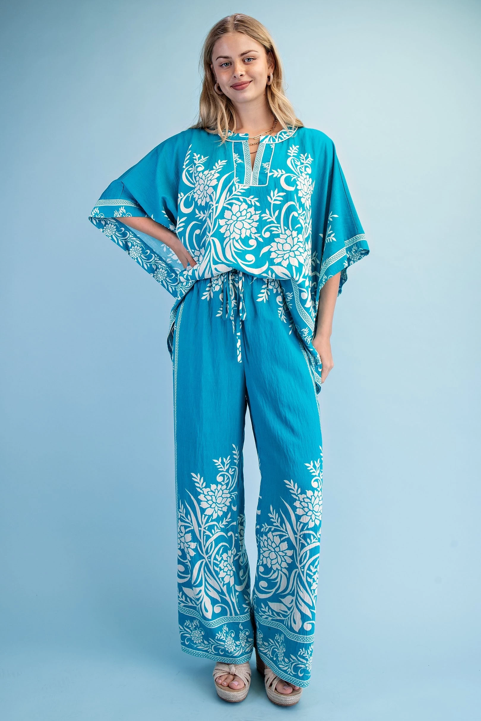 Mixed Tropical Print Relaxed Fit Top with Dolman Sleeves
