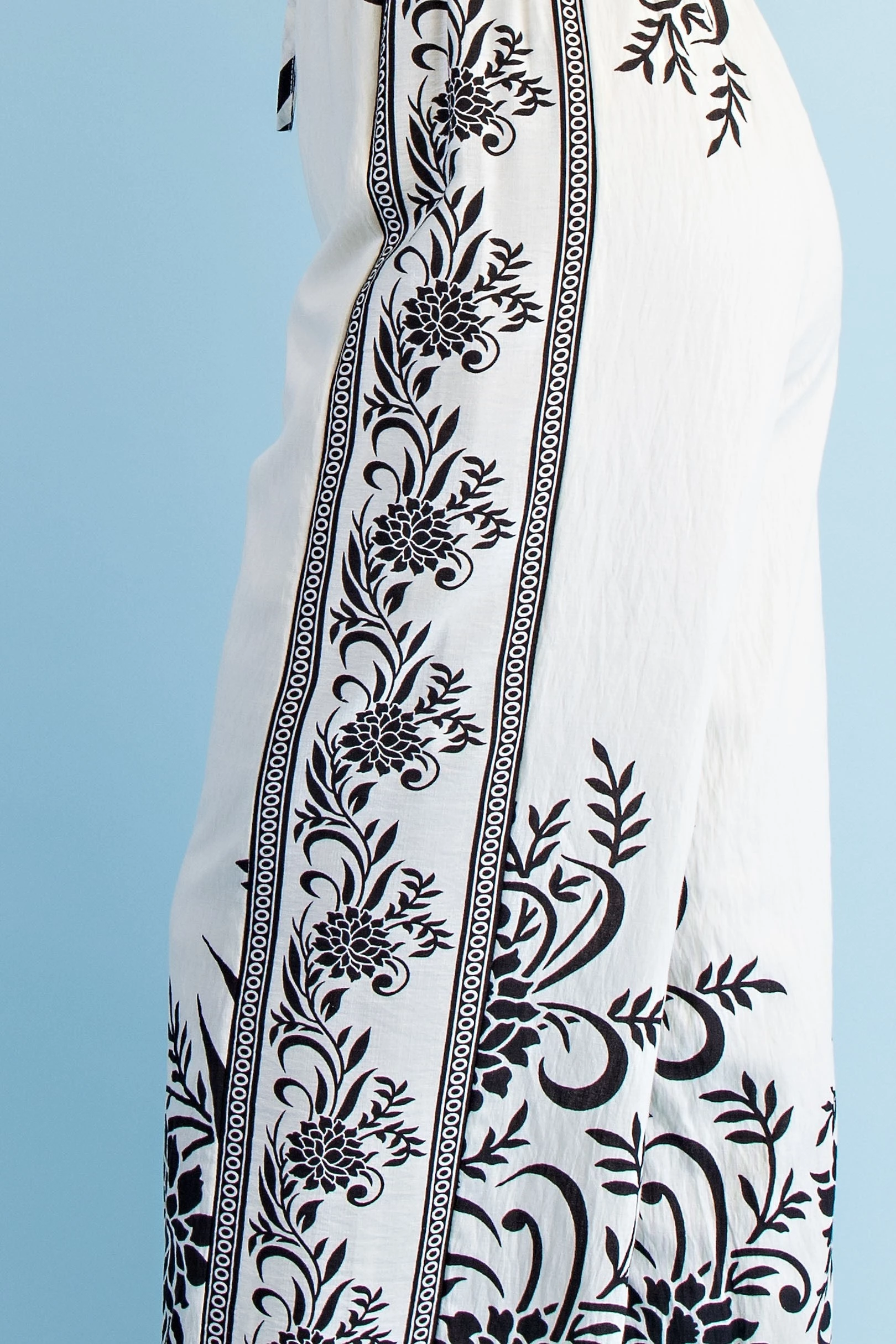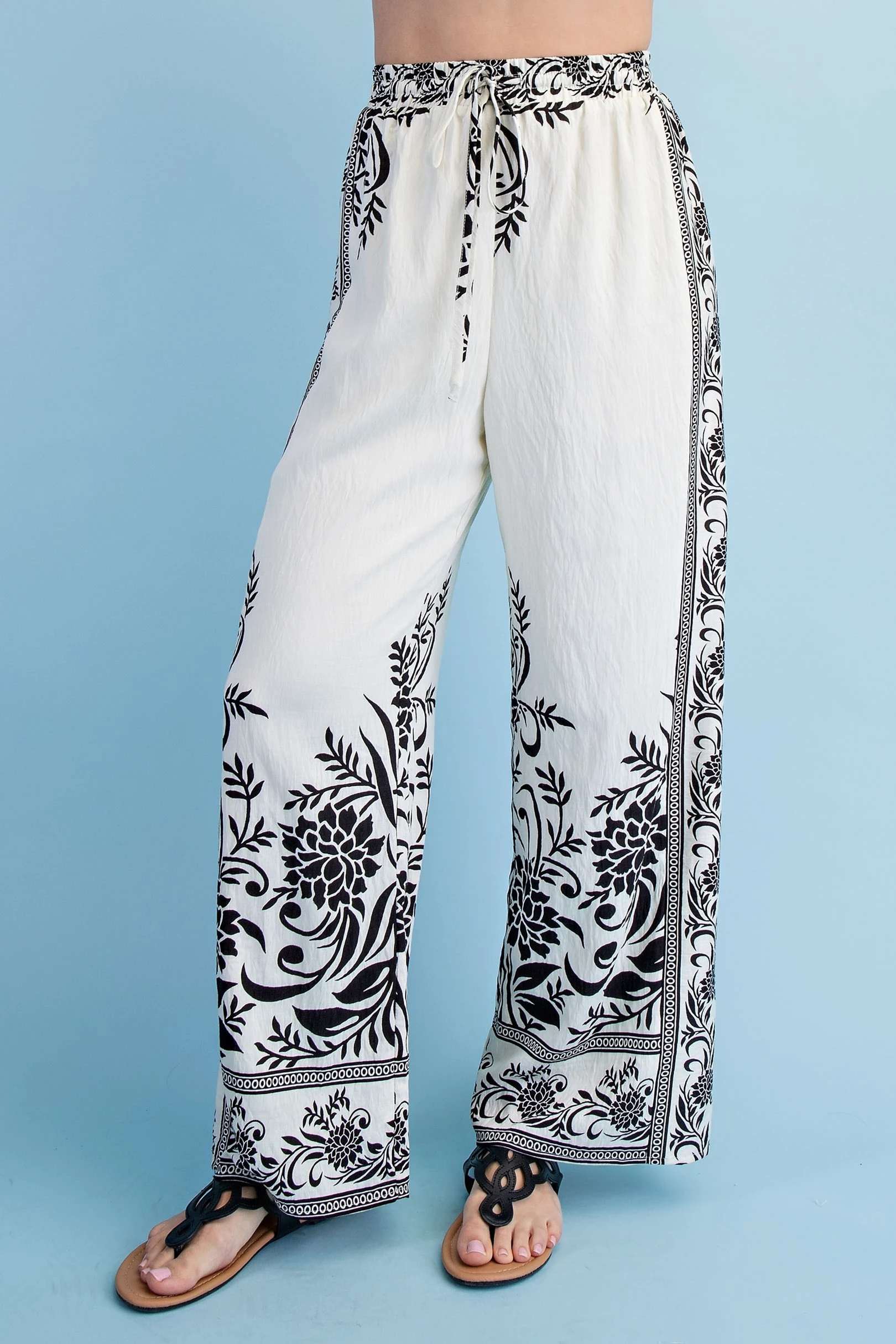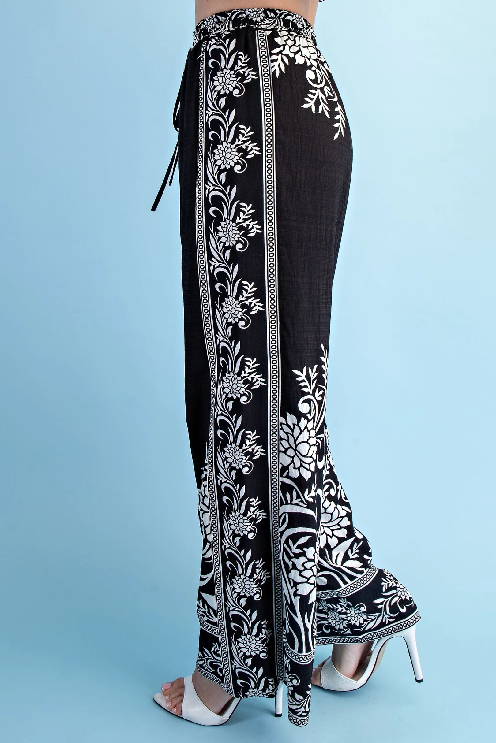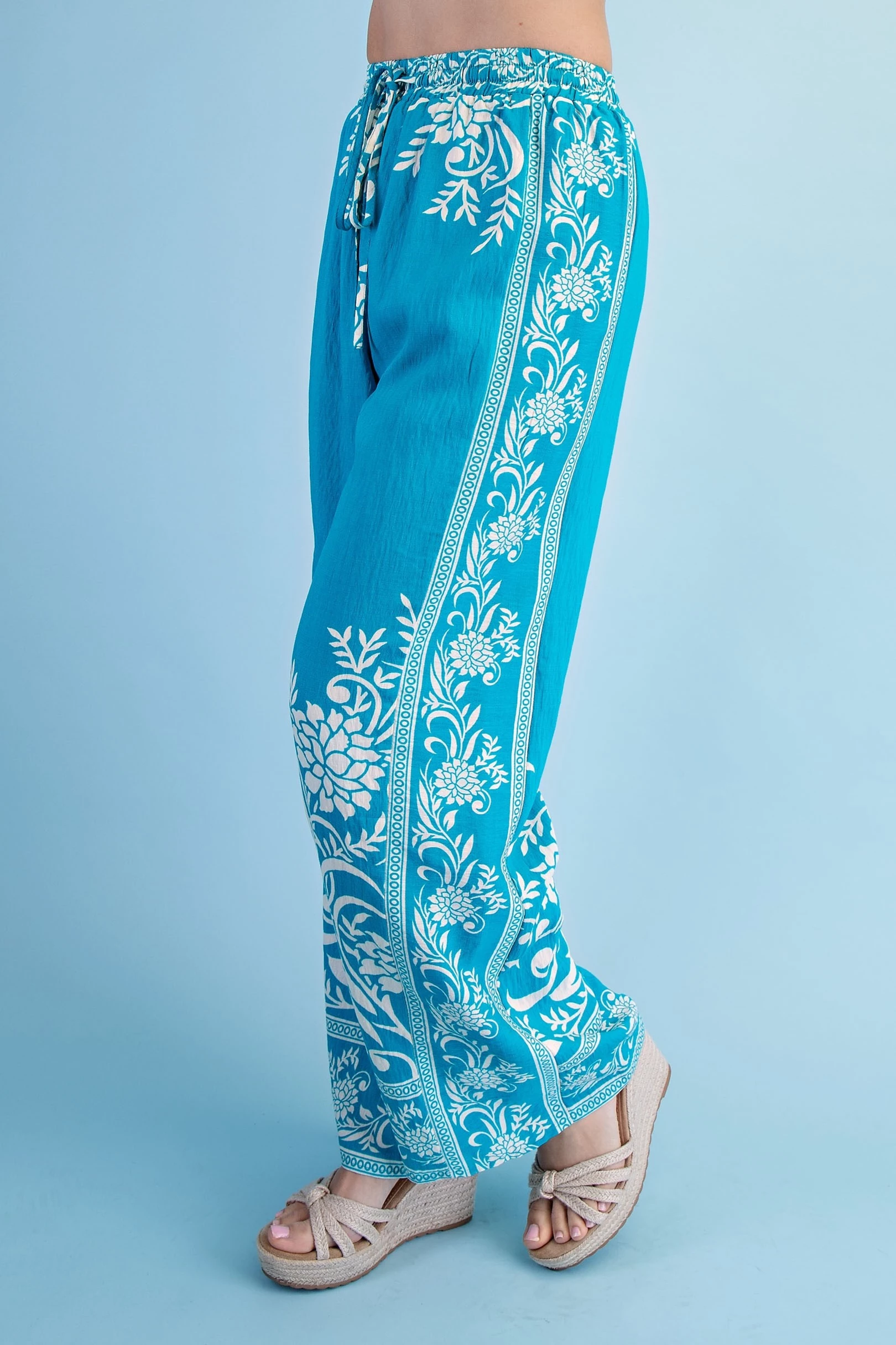 Mixed Tropical Print Pants with a Braided Belt