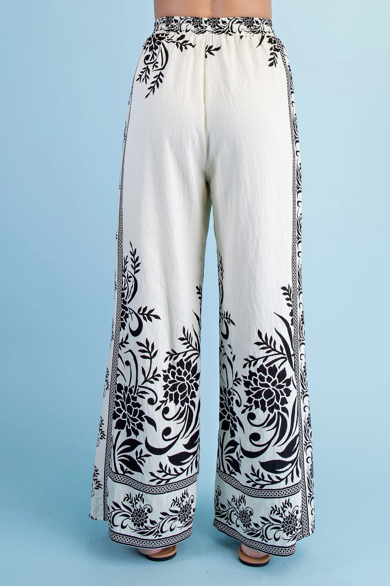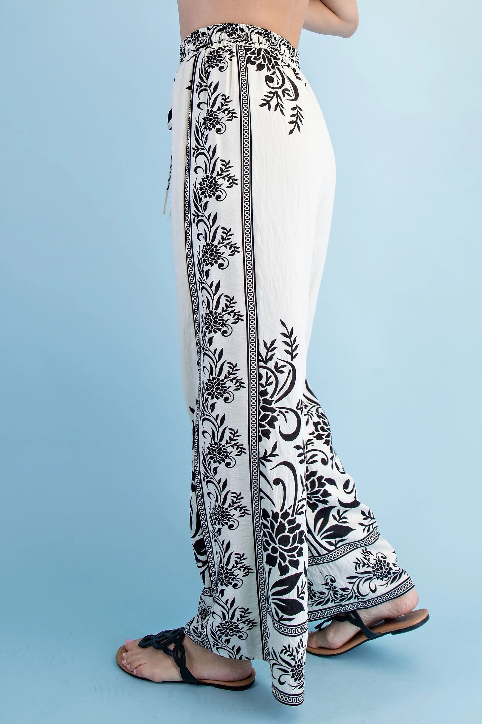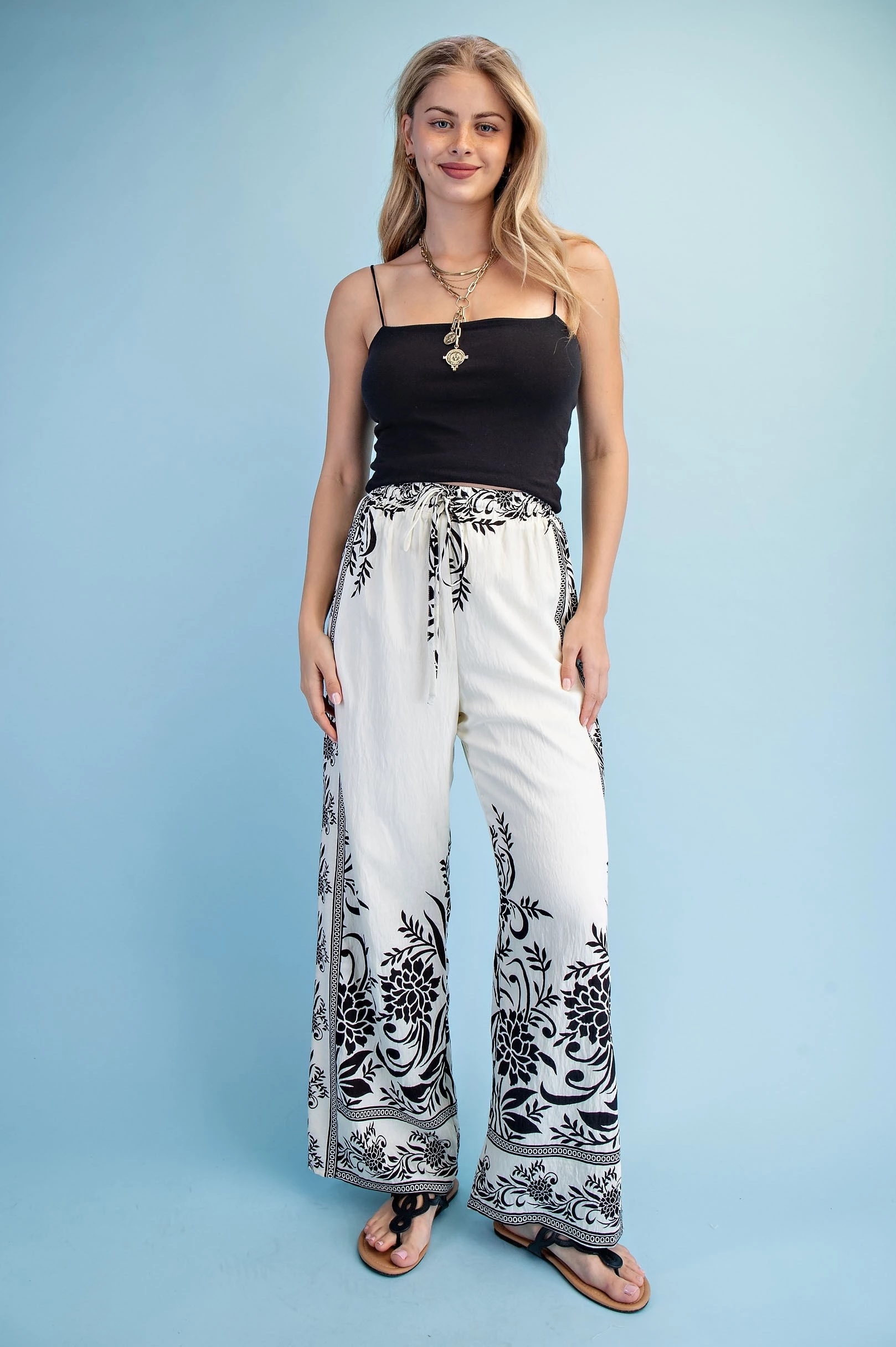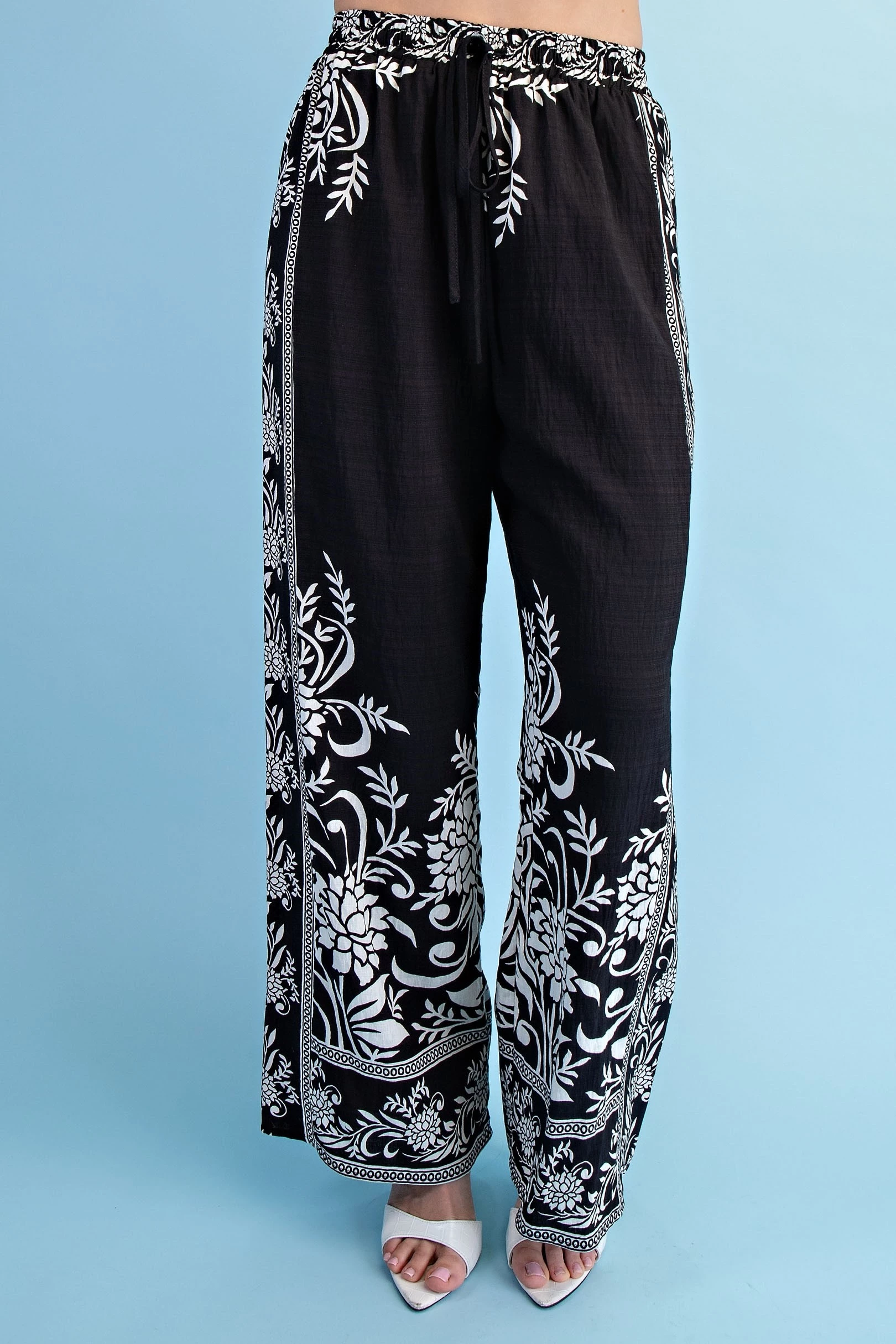Mixed Tropical Print Pants with a Braided Belt