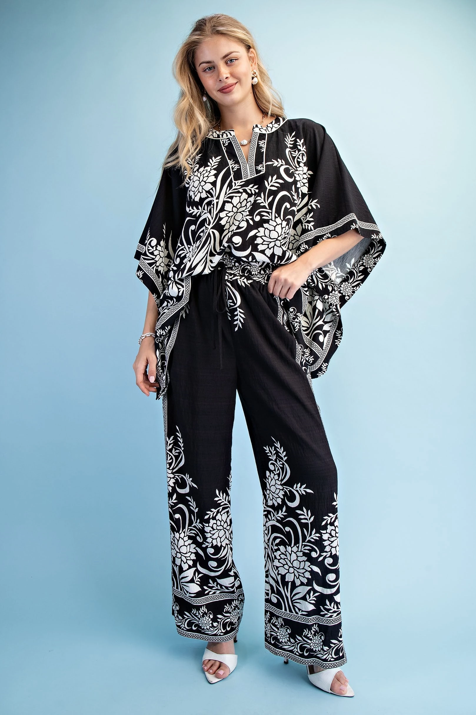 Printed Draped Dolman Sleeve Top