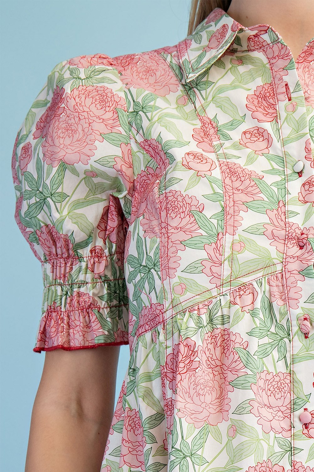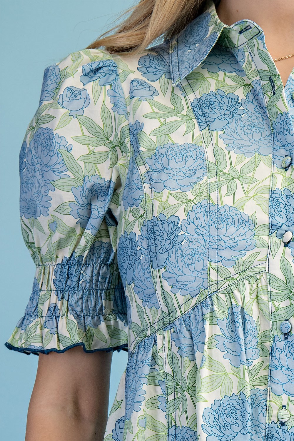 3/4 Length Gathered Balloon Sleeve Blouse with a Rounded Back Yoke