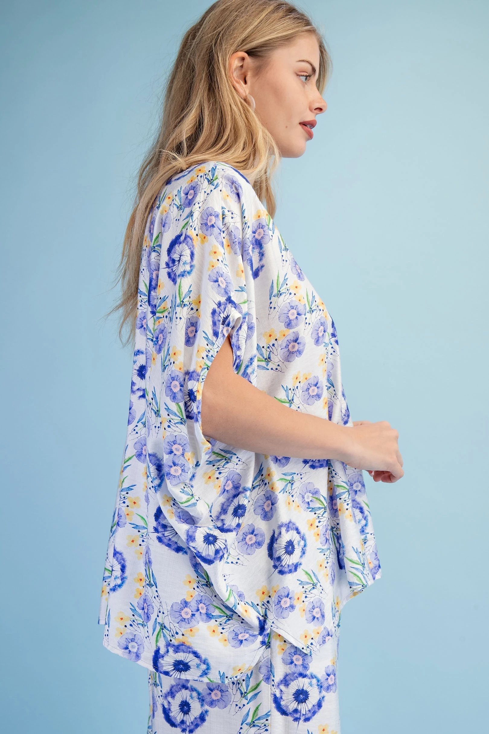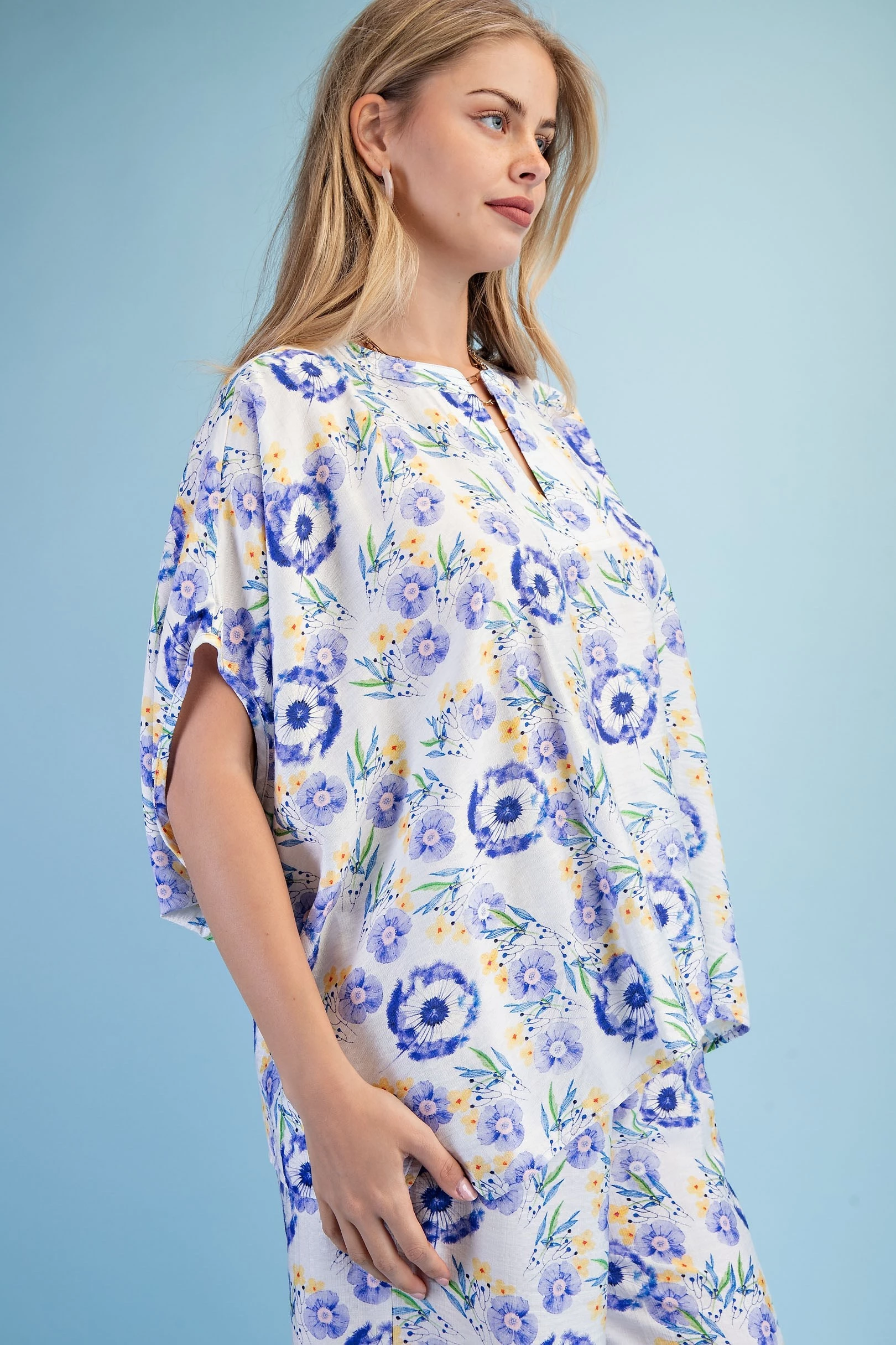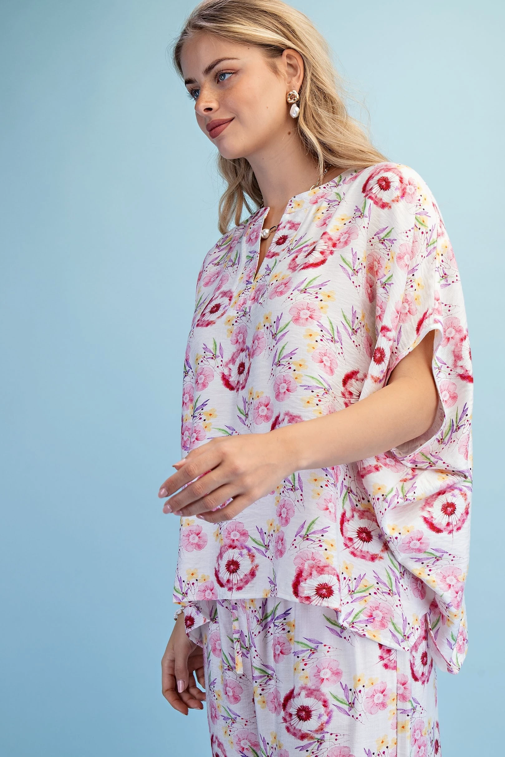 Floral Print Relaxed Fit Top with Dolman Sleeves