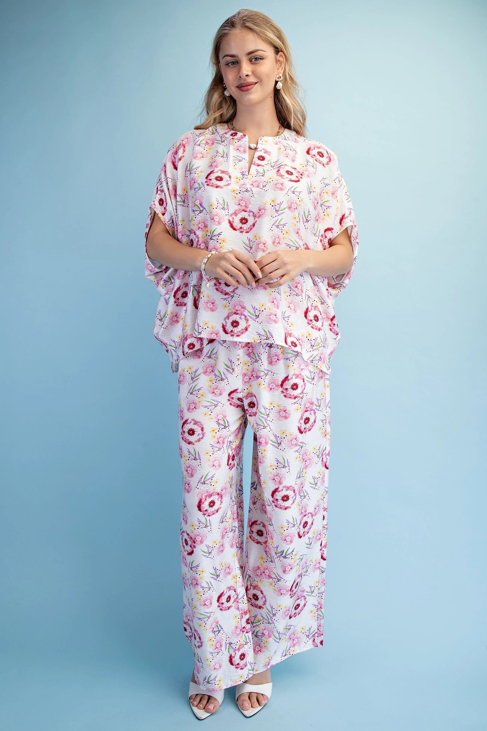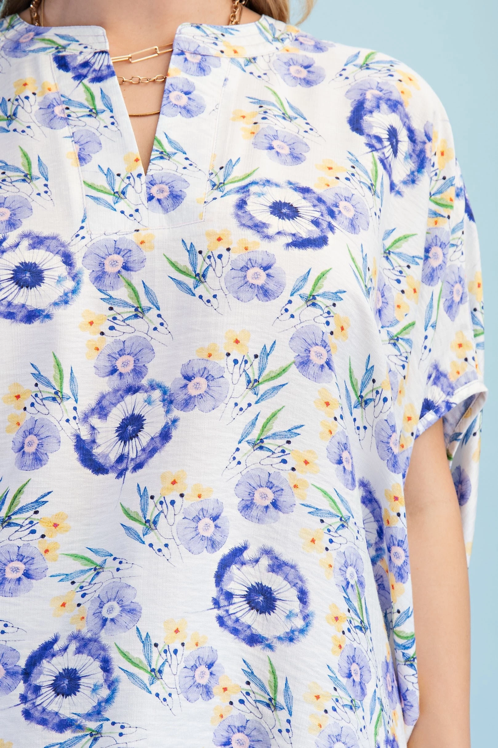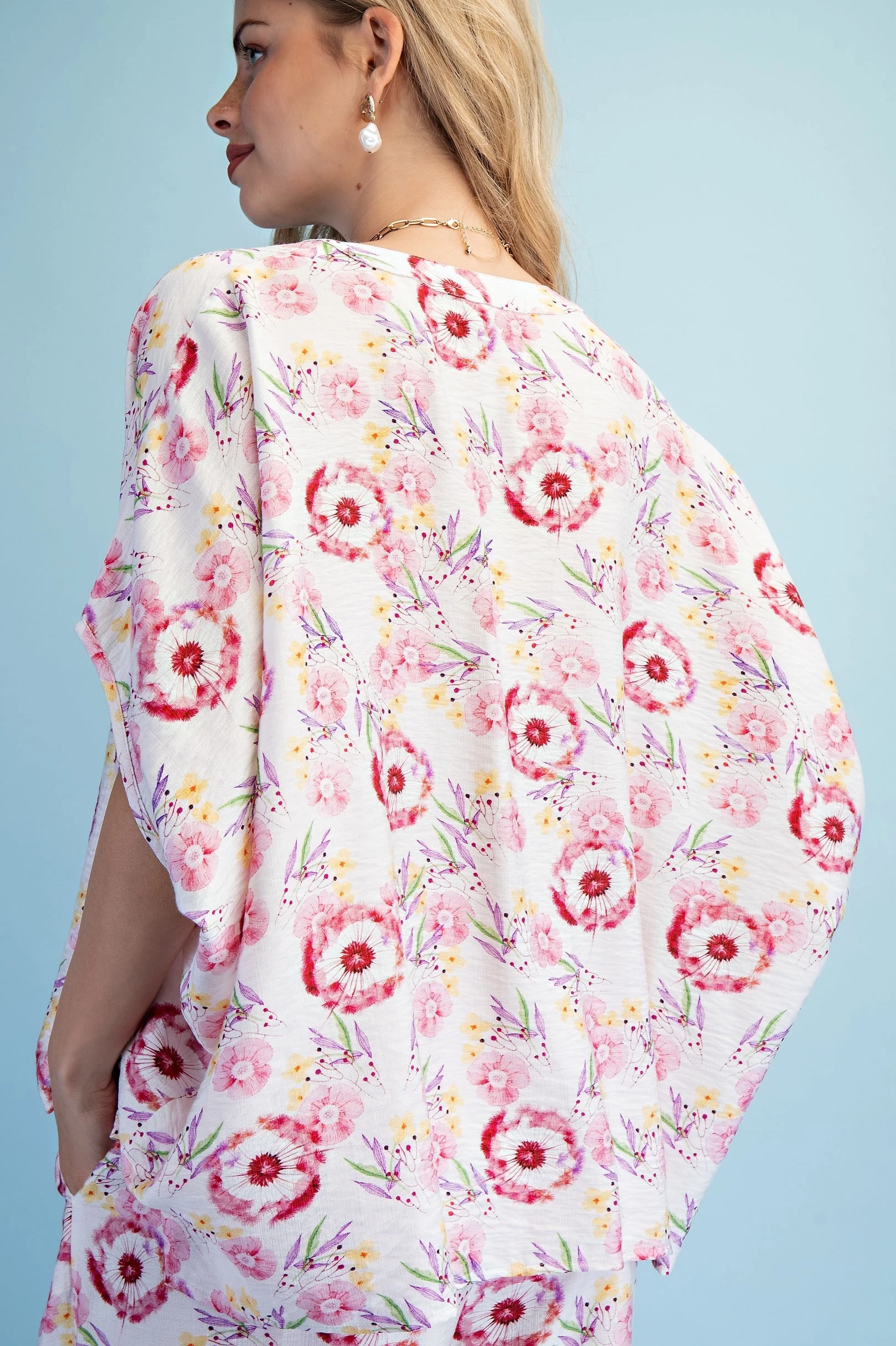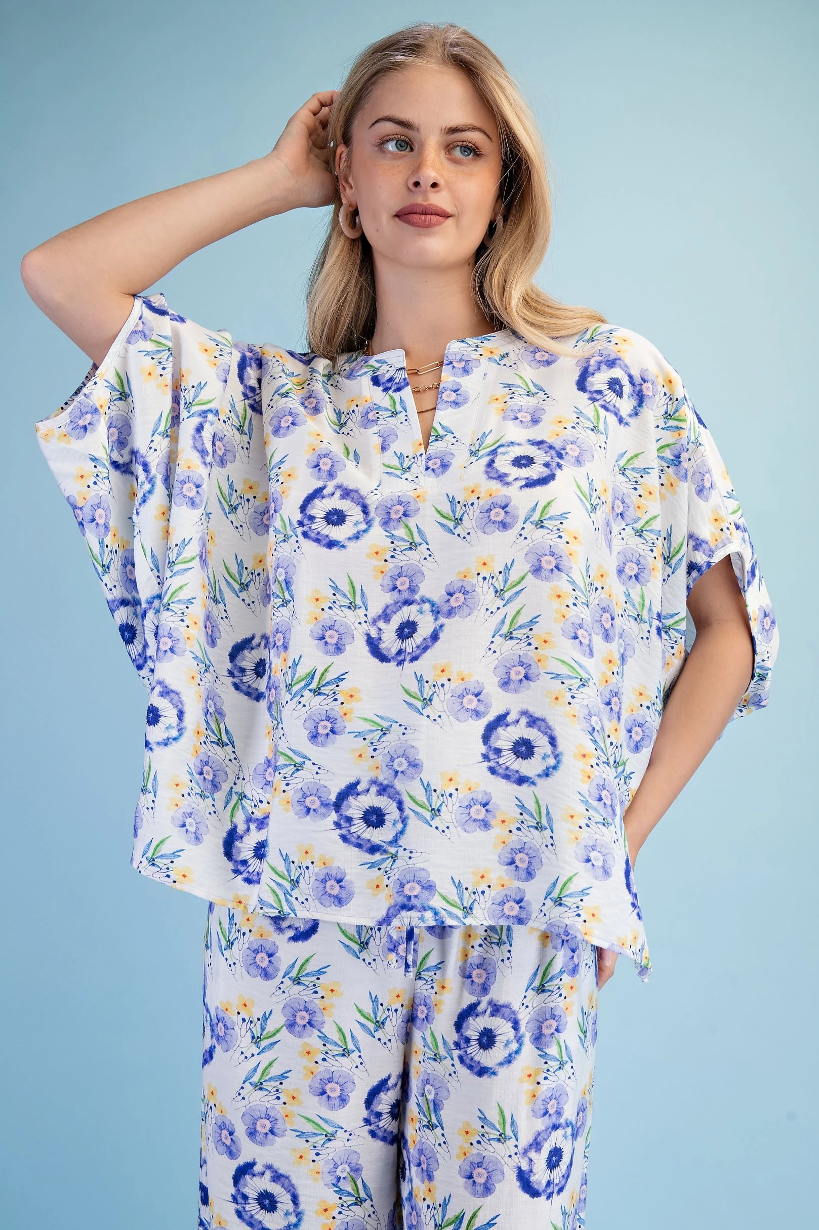 Floral Print Relaxed Fit Top with Dolman Sleeves