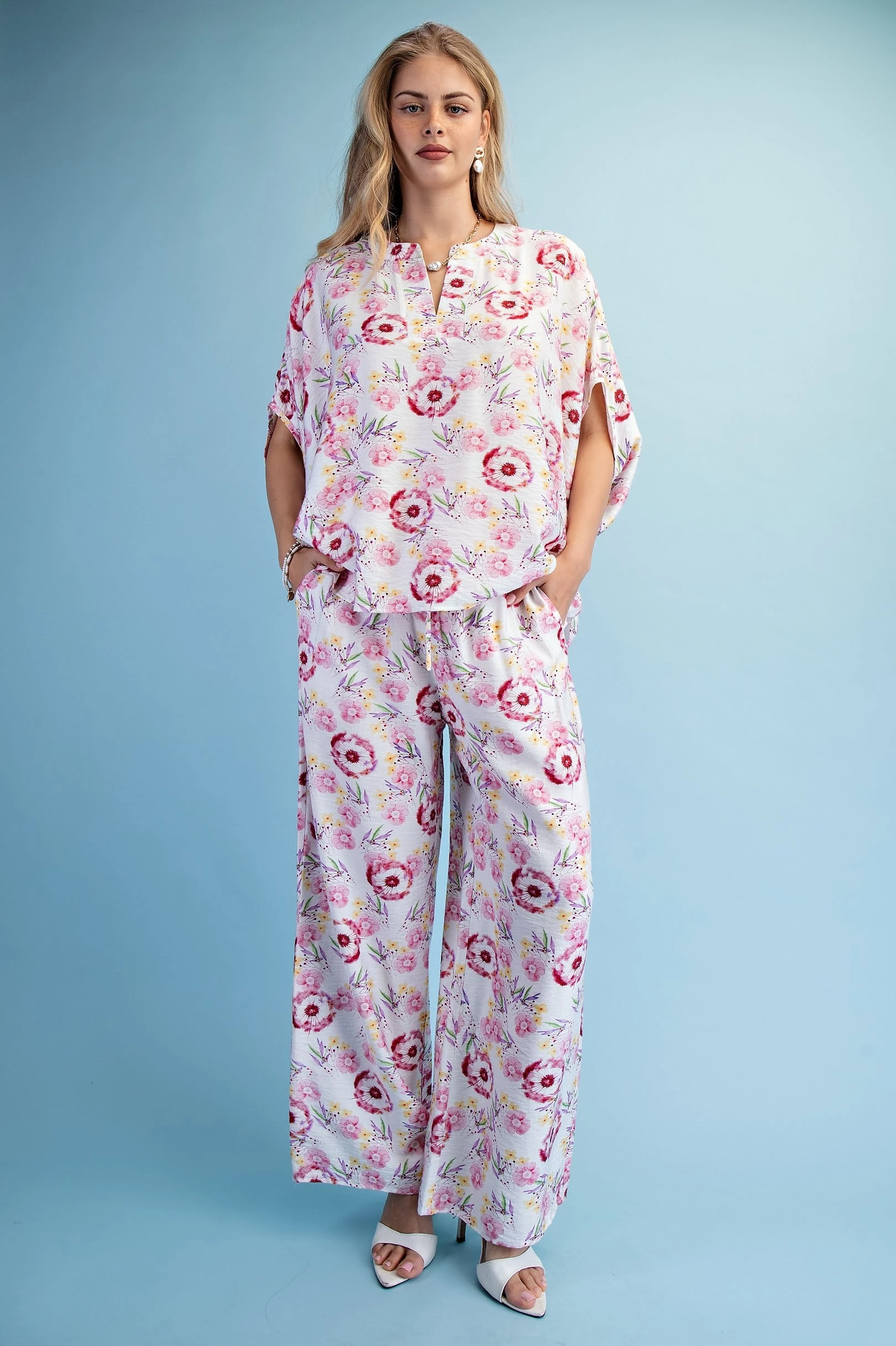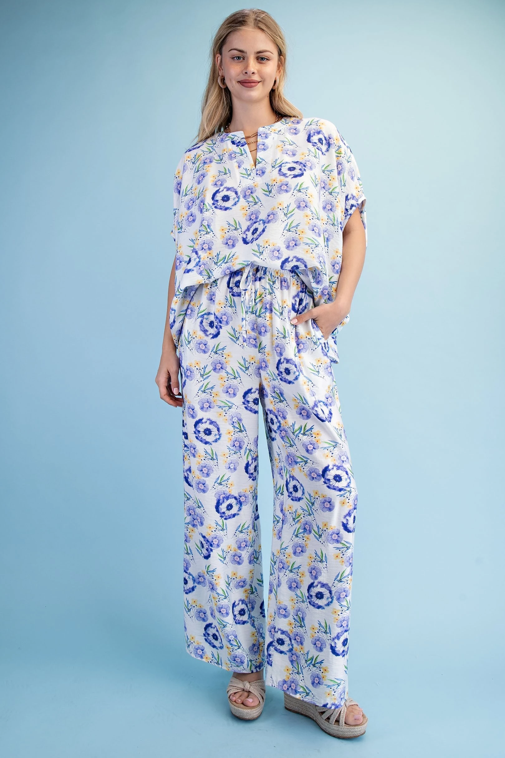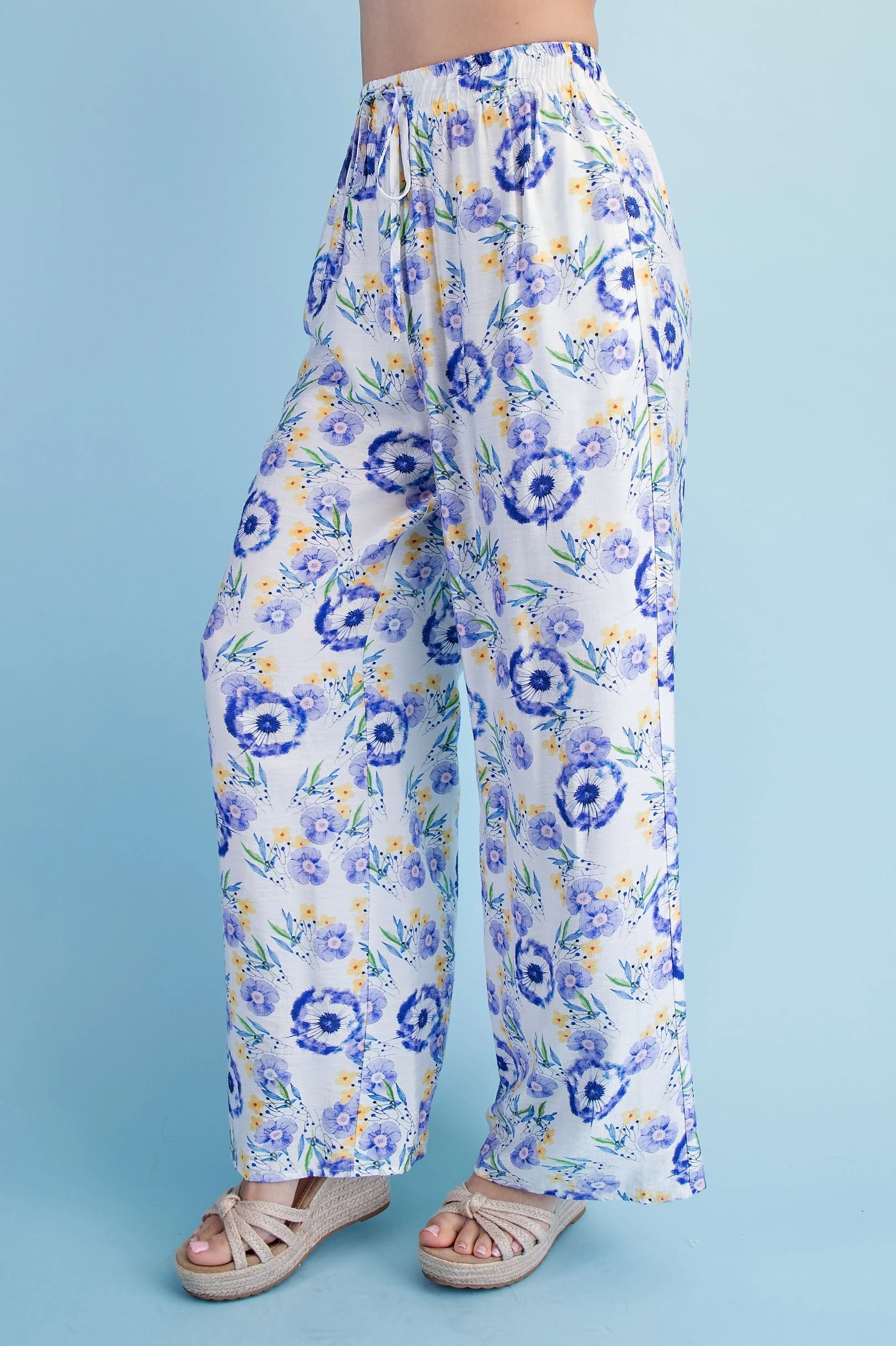 Floral Print Relaxed Fit Pants with an Elastic Waist and Drawstring