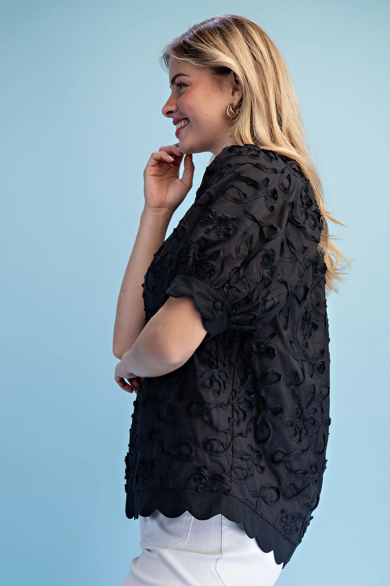 Short Sleeve Top with Smocking on Front and Back