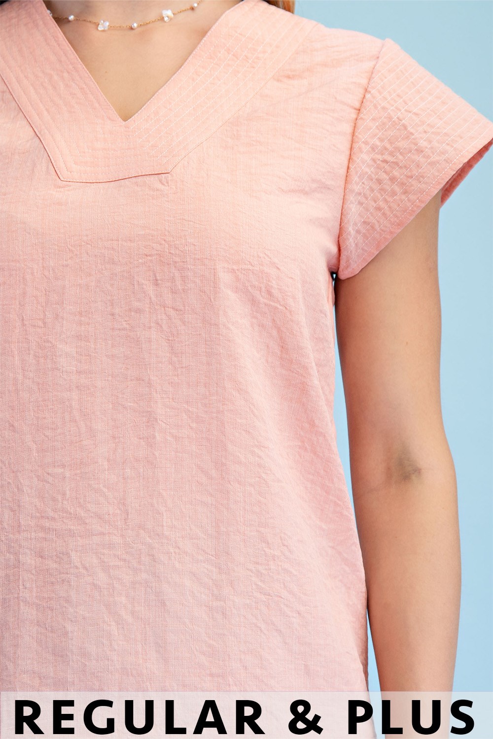 Textured Crinkle Surplice Top with Side Drawstring and Snap Button