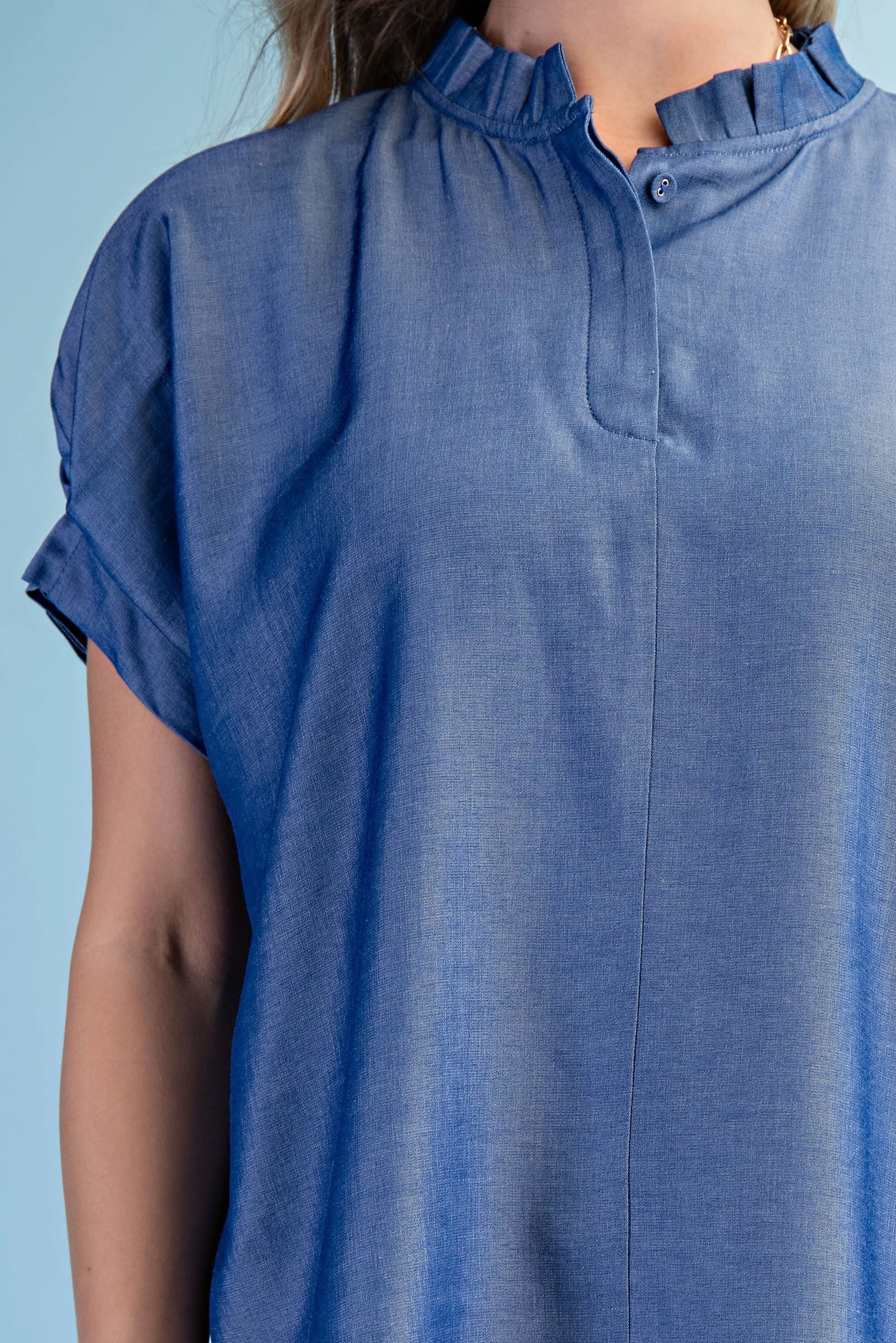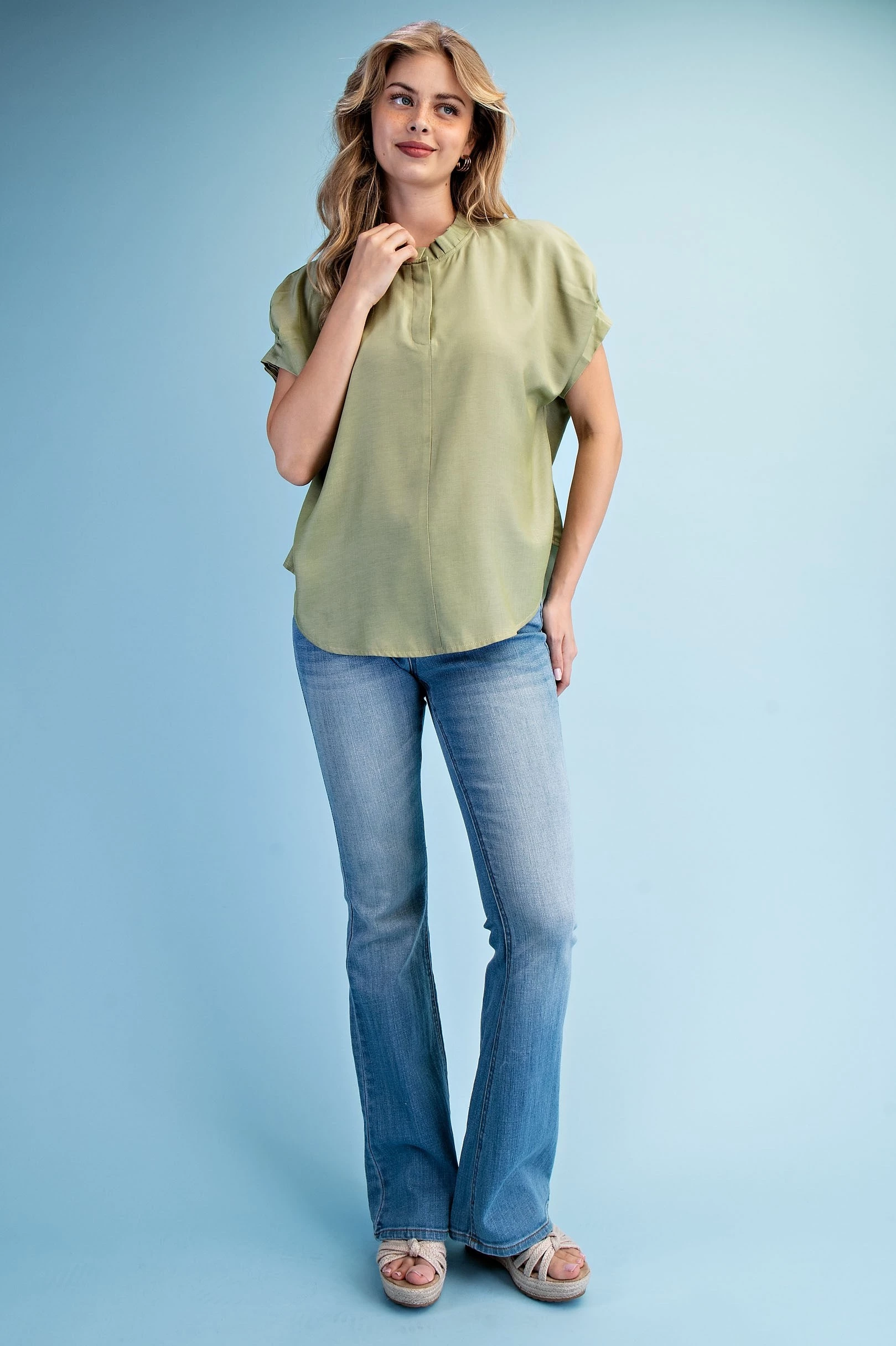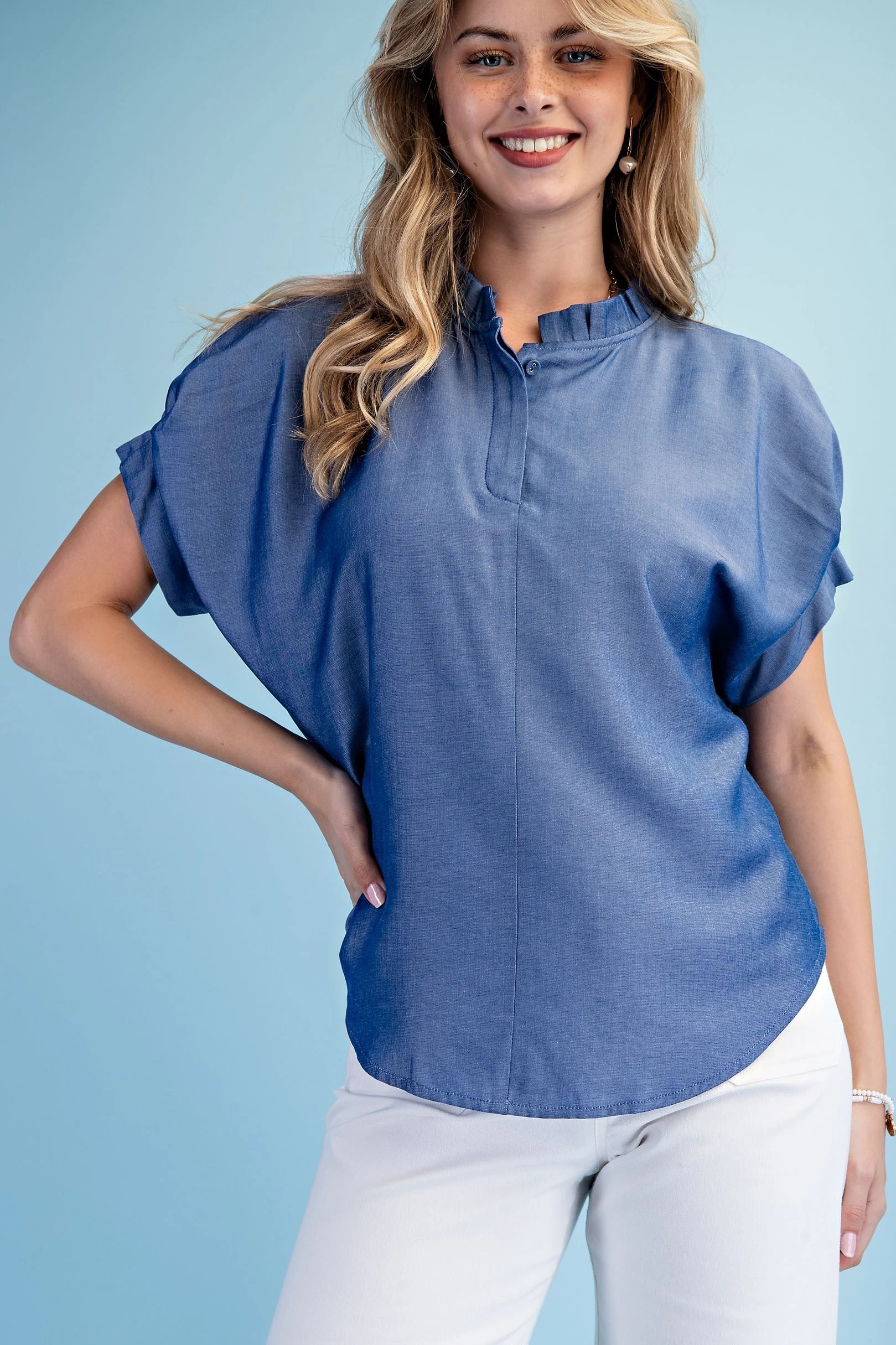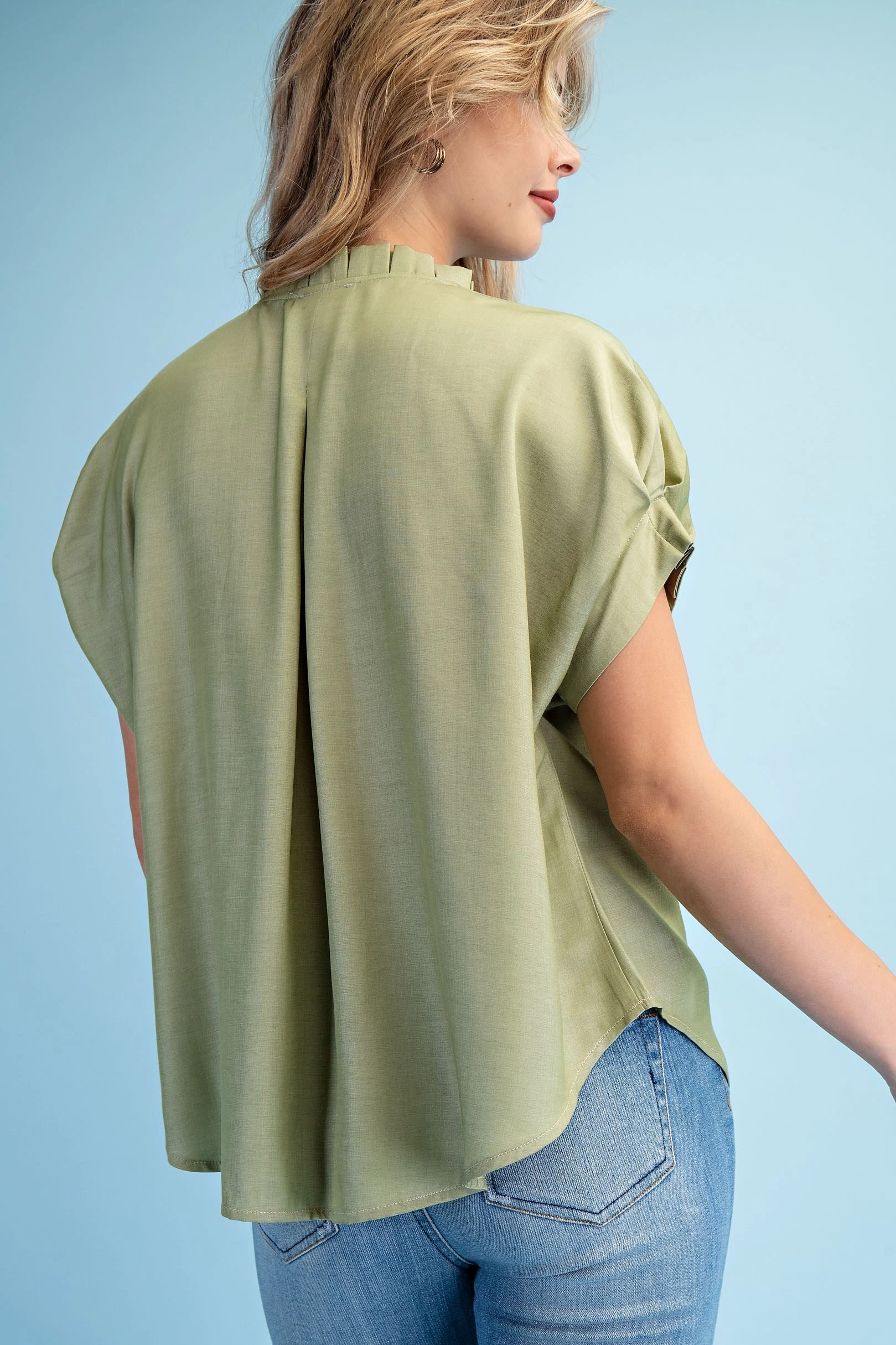 Linen V-Neck Top with a Padded Cap Sleeve