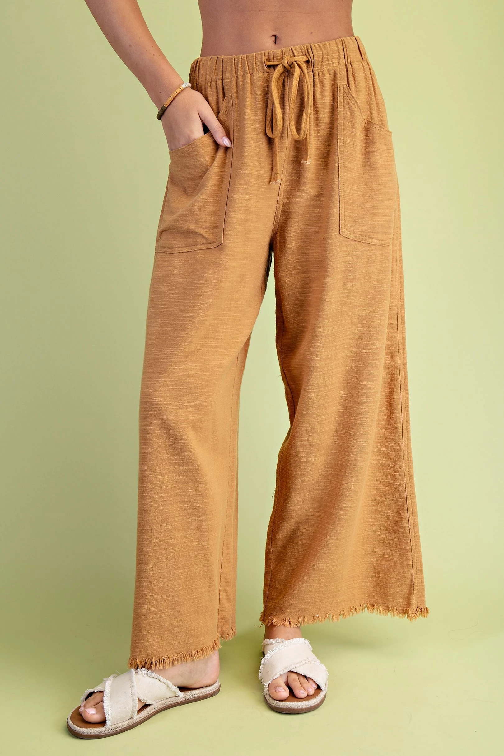 Frayed Wide Leg Pants with Pockets